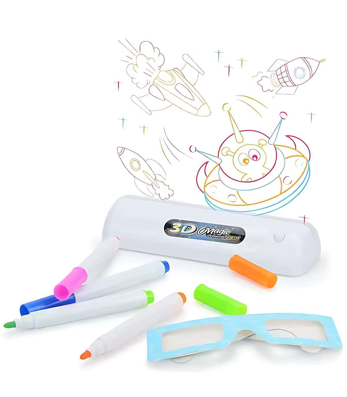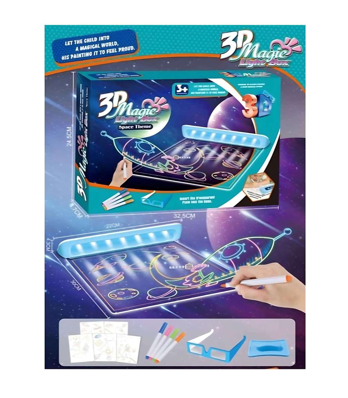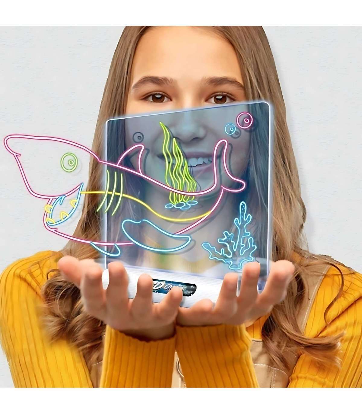 Zaskocz swoje dziecko nowoczesną formą rysowania! Magiczna tablica 3D, która pozwala tworzyć trójwymiarowe rysunki za pomocą specjalnych pisaków fluorescencyjnych i szkiców. Dzięki wbudowanemu oświetleniu LED i dołączonym okularom 3D każda praca ożywa – dosłownie!