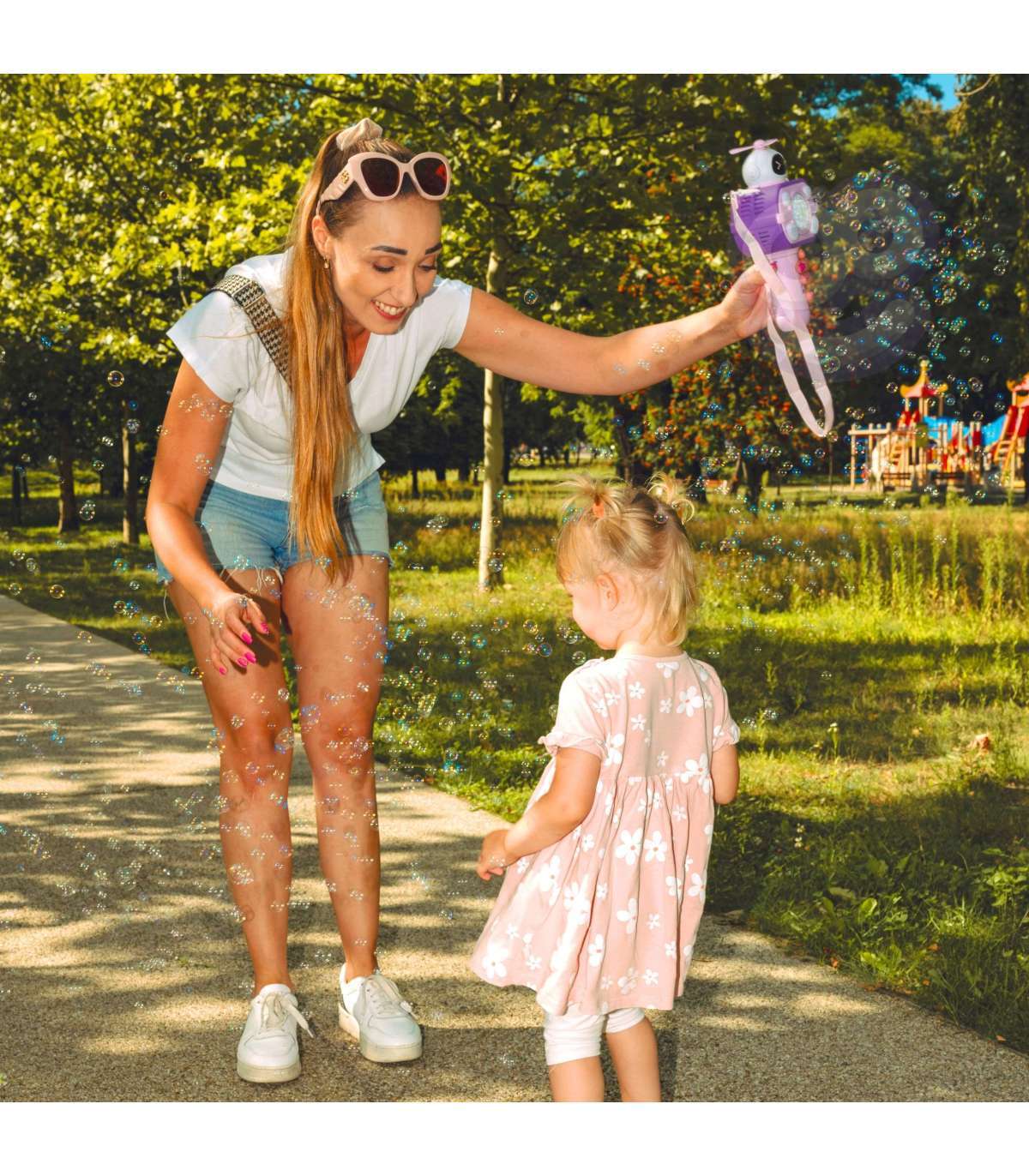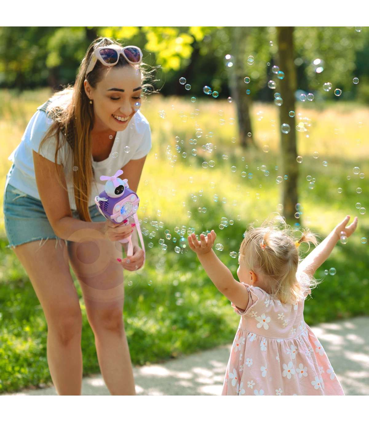 - Включается нажатием кнопки и автоматически выпускает пузыри
