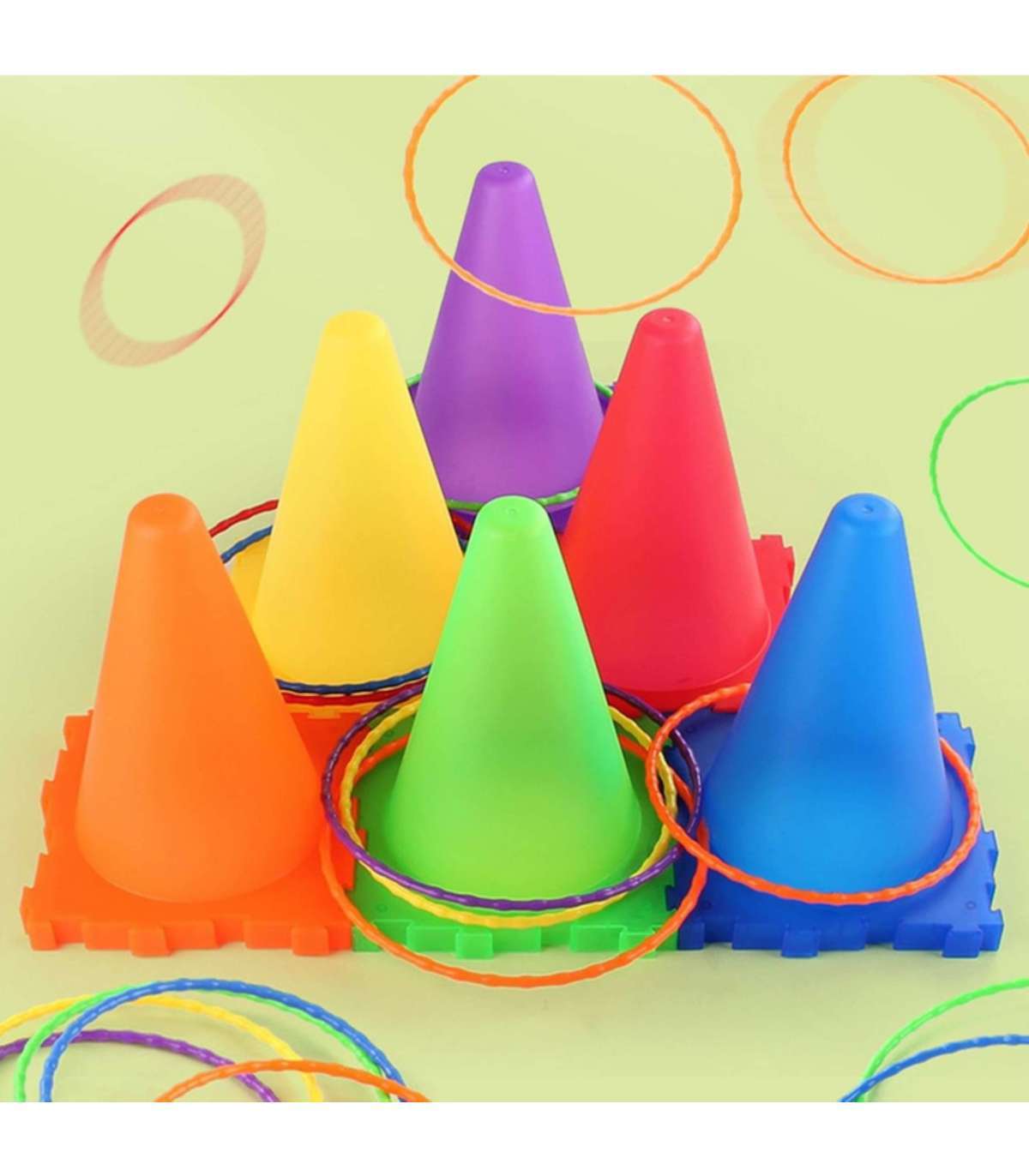 - Броски колец на цветные конусы.