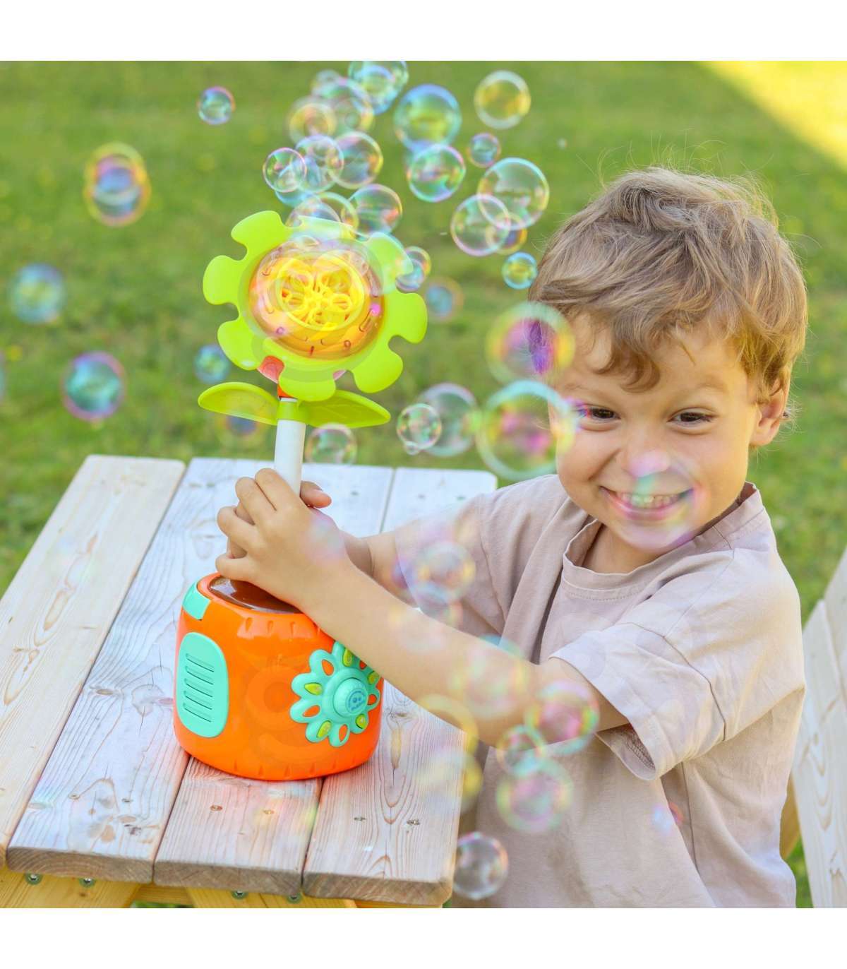 - Автоматическая генерация пузырей – подсолнух сам выпускает множество пузырей, создавая волшебную атмосферу.