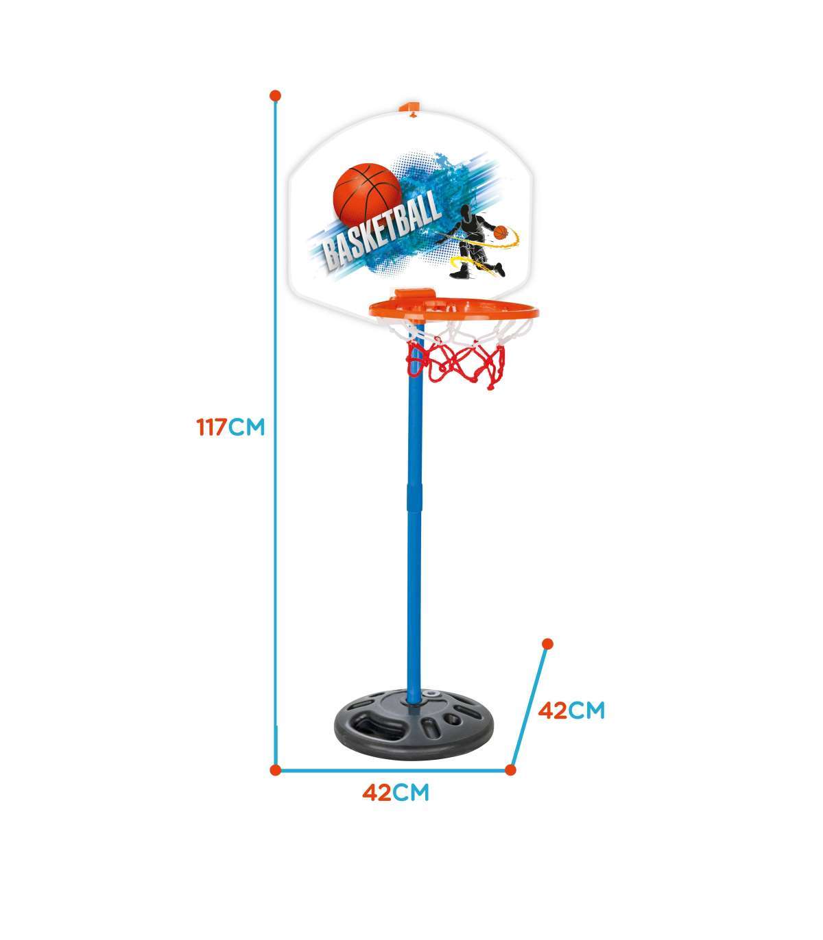 Zestaw koszykówka z piłką marki Woopie jest super zestawem sportowym dla najmłodszych dzieci! Zestaw zachęca Twoje dziecko do uprawiania sportu. Aktywność dostarczy twojemu dziecku rozwój tzw. dużej motoryki, co jest idealne dla prawidłowego rozwoju dziecka. Wielkim plusem jest to, że produkt może być używany zarówno w domu jak, i na zewnątrz - Twoje dziecko będzie mogło grać wszędzie bez względu na pogodę. Dodatkowo podstawę można wypełnić piaskiem w celu poprawy stabilności. Koszykówka jest wysokości 117 cm - doskonała dla najmłodszych graczy!