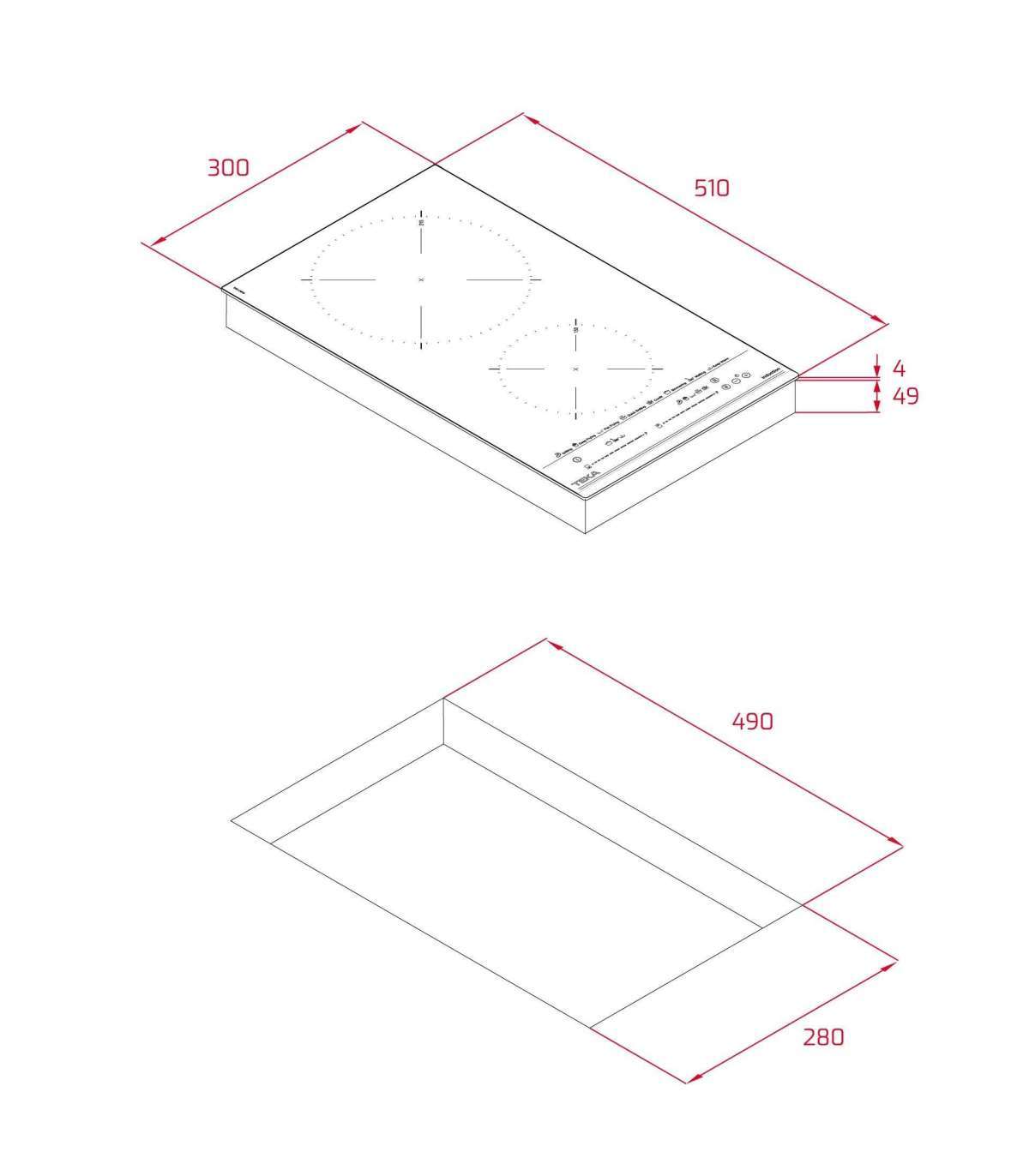 - Hob width, mm