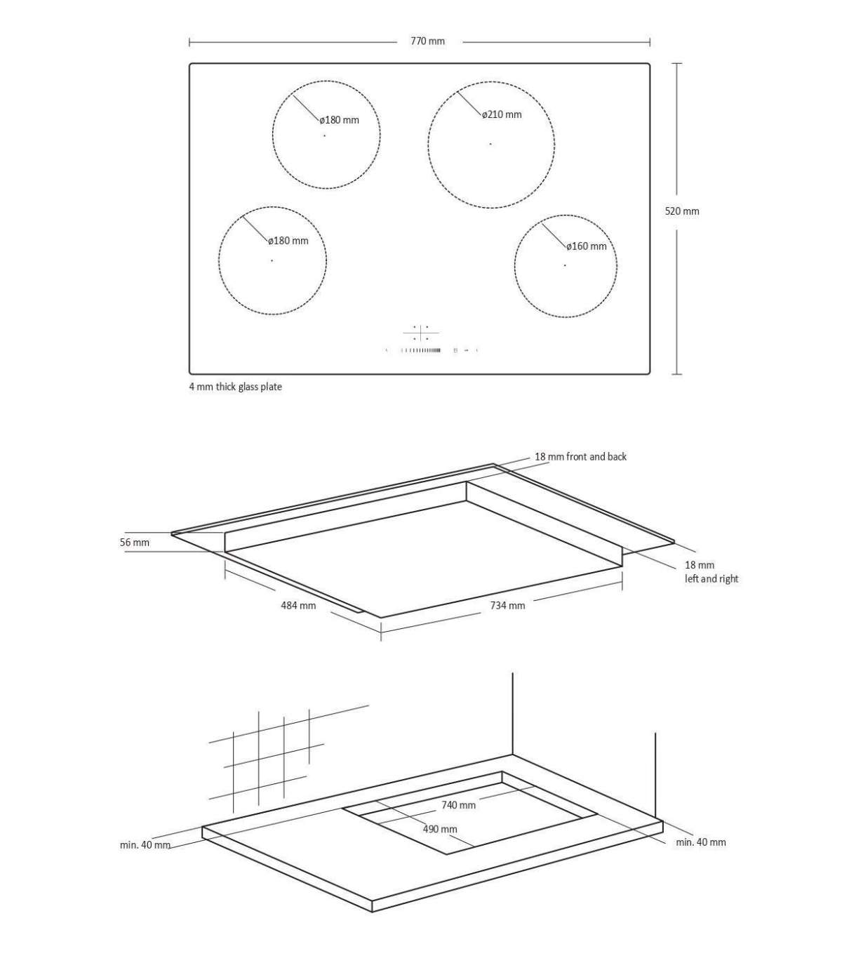 If your favorite is pure black, choose a hob that does not have the contours of the drawn cooking zones.