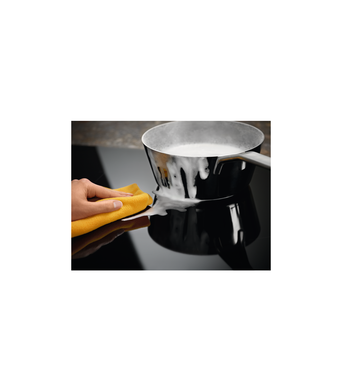 Induktsioontehnoloogia tähendab, et kuumus kandub kiiresti täpselt õigesse kohta, samas kui seda ümbritsev ala jääb jahedaks ja ohutuks. Samuti reageerib see viivitamatult temperatuuri muutustele. Sile pind teeb puhastamise lihtsaks.