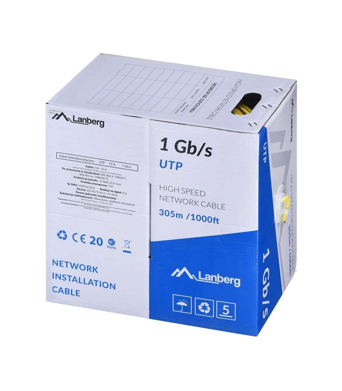 LANBERG UTP CABLE 1GB/S 305M WIRE CCA YELLOW