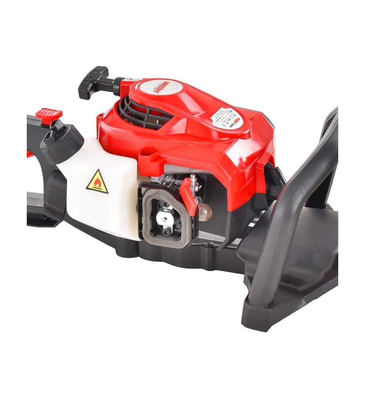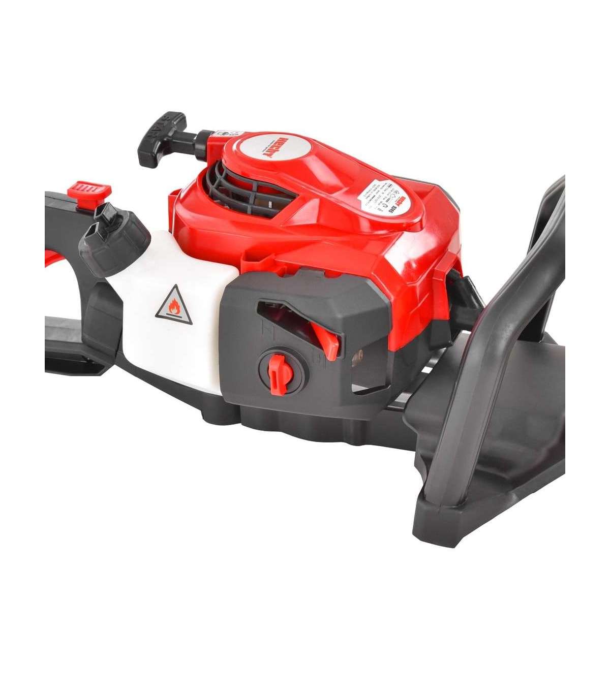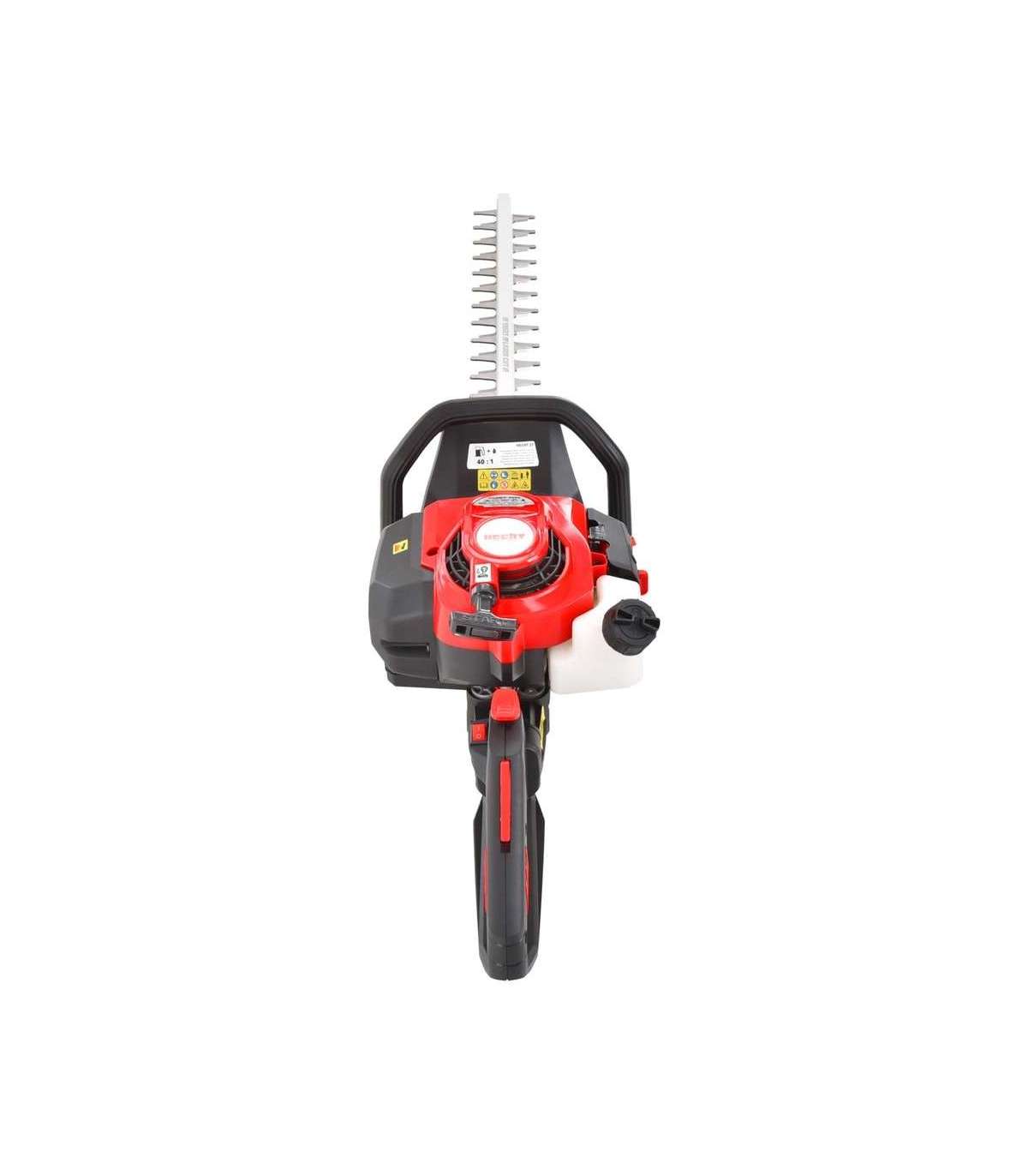 Бензиновый кусторез для живой изгороди с поворотной рукояткой. Приводится 2-тактным двигателем с рабочим объемом 25,4 см3 и мощностью 1,0 л.с. (HP). Длина рабочего ножа механизма 70 см, этот нож изготовлен из стали. Макс. диаметр срезаемых веток 22 мм. Bec:5,8 кг