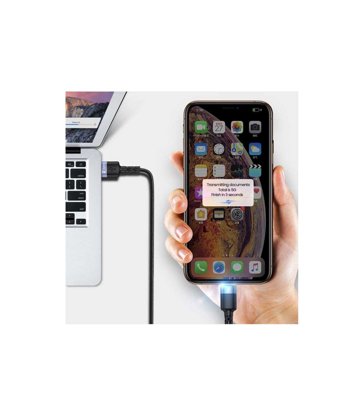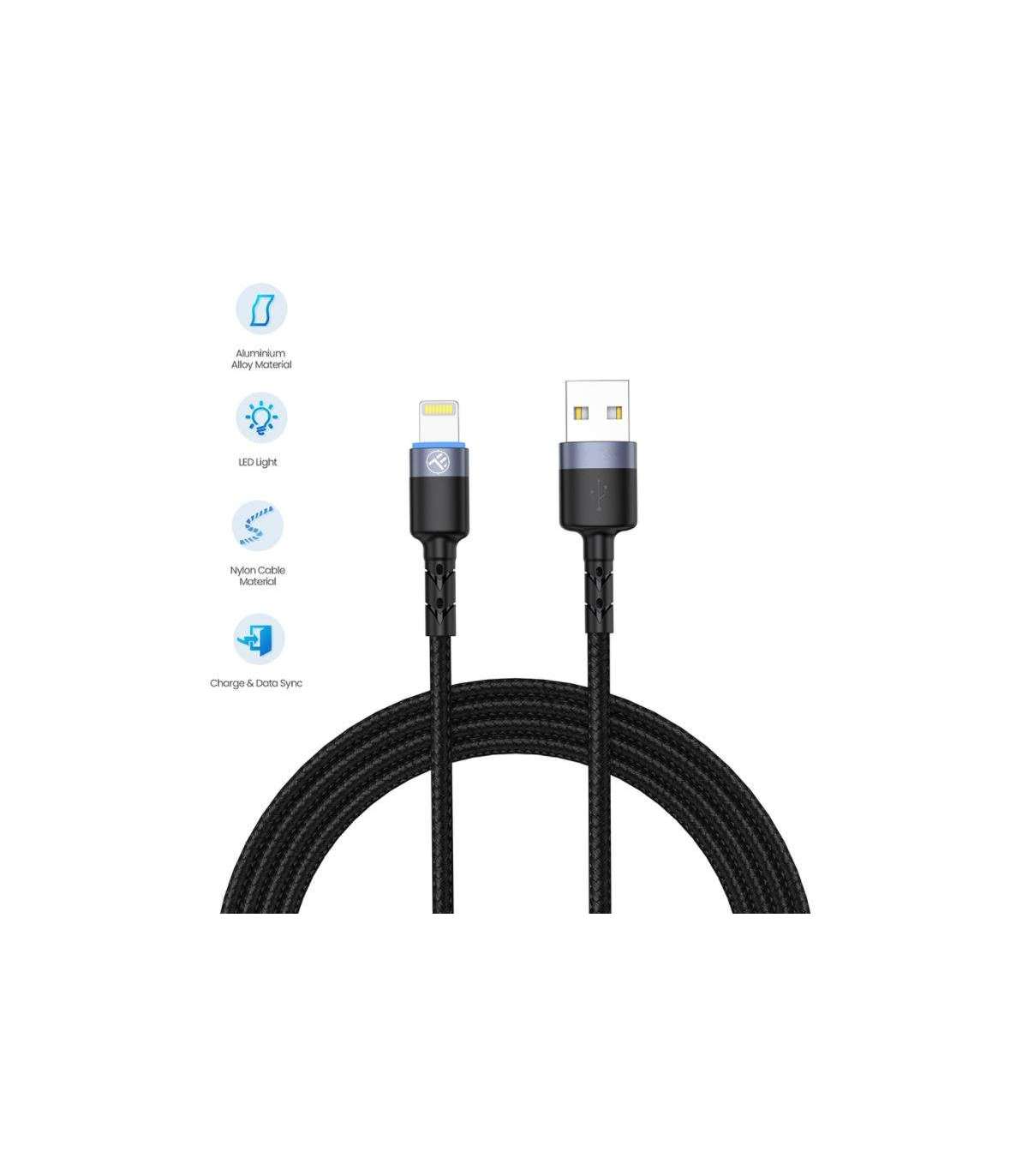 Tellur Data cable USB to Lightning LED, Nylon Braided, 1.2m black