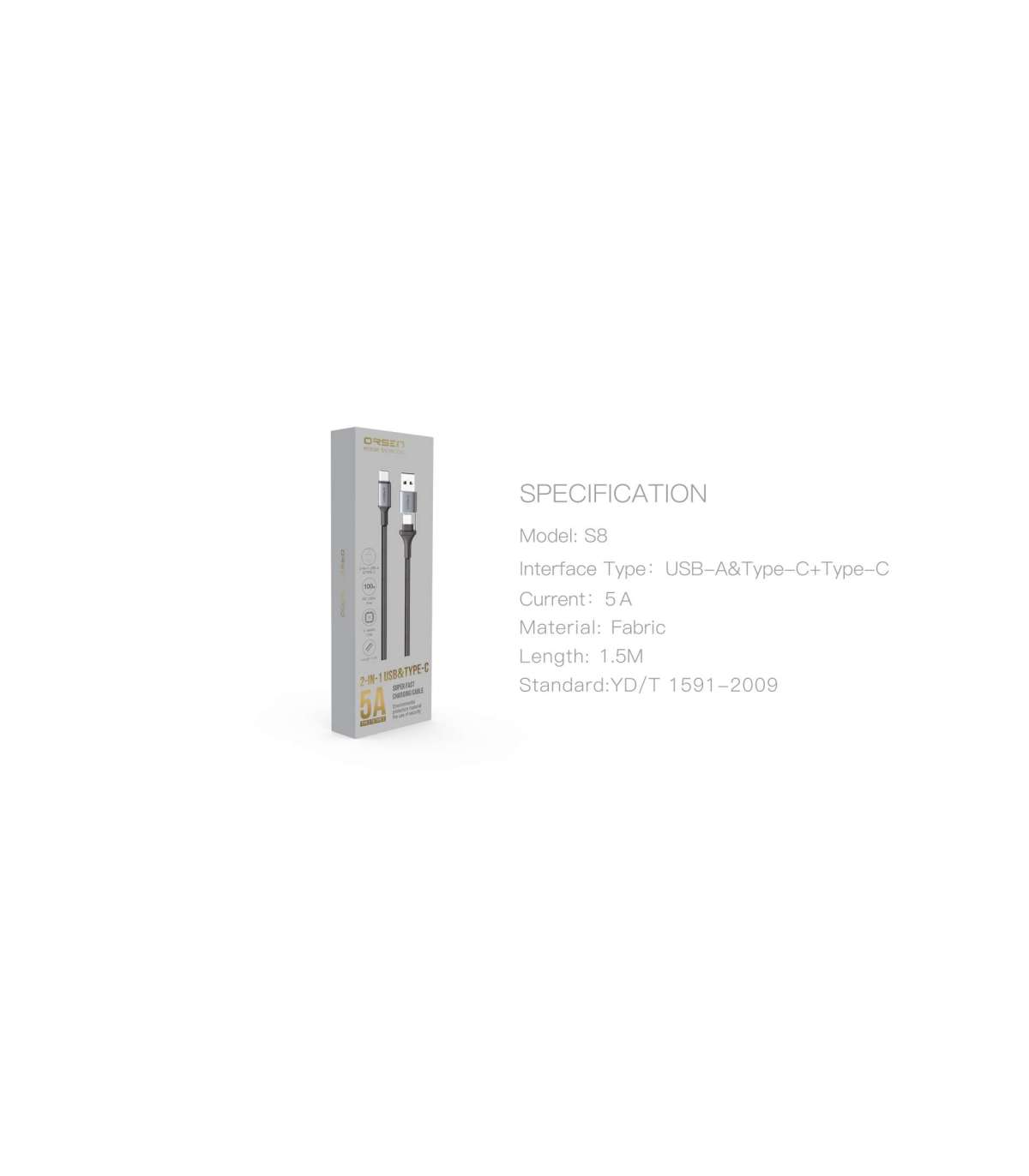 Orsen S8 2-IN-1 USB and Type-C 5A 1.5m black