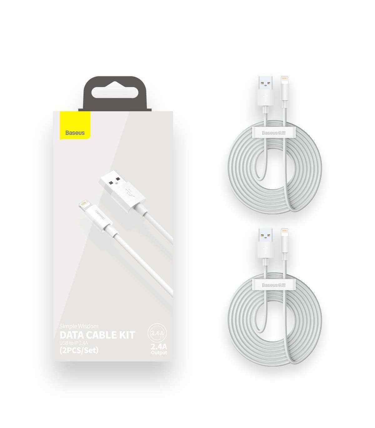 Baseus Simple Wisdom Data Cable Kit USB to Lightning 2.4A (2PCS/Set)1.5m White