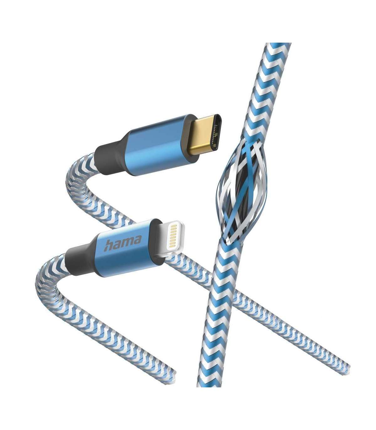 Hama 00201561 Reflective Charging Cable, USB-C - Lightning 1.5m Nylon blue