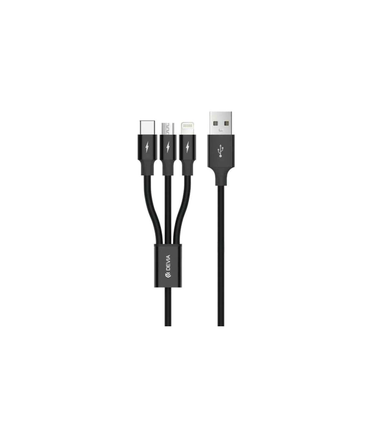Devia Kintone Series 3In1 Tube, USB to Lightning, MicroUSB, Type-C, 1,2m, Black