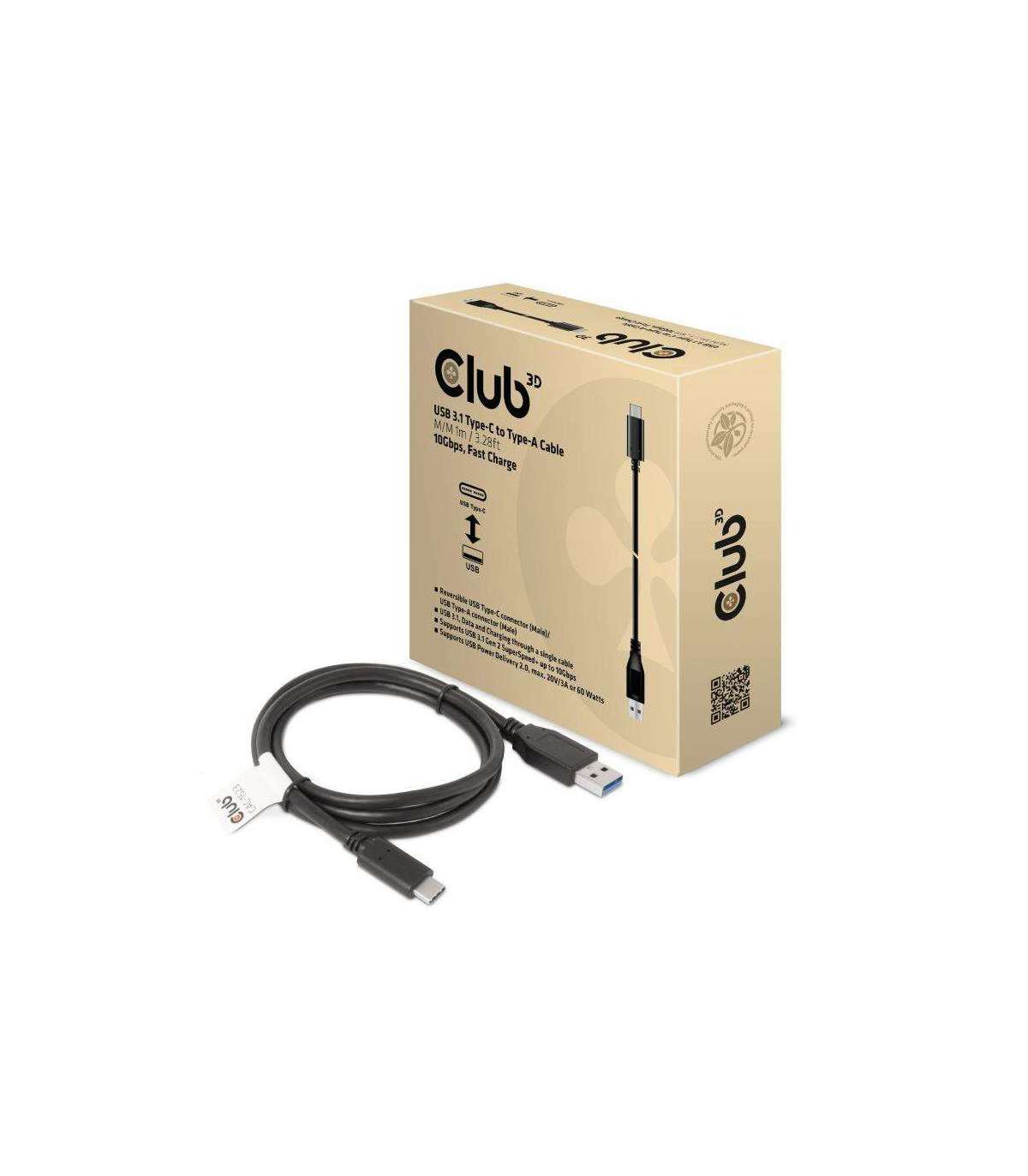 CAC-1523 The Club 3D USB 3.1 Type-C to USB Type-A cable connects your Notebook, Tablet or Phone with USB Type-C output to your favorite existing Peripherals, Accessories and Chargers featuring the common USB Type-A plug. It enables Data and Power over a single cable and both ways.