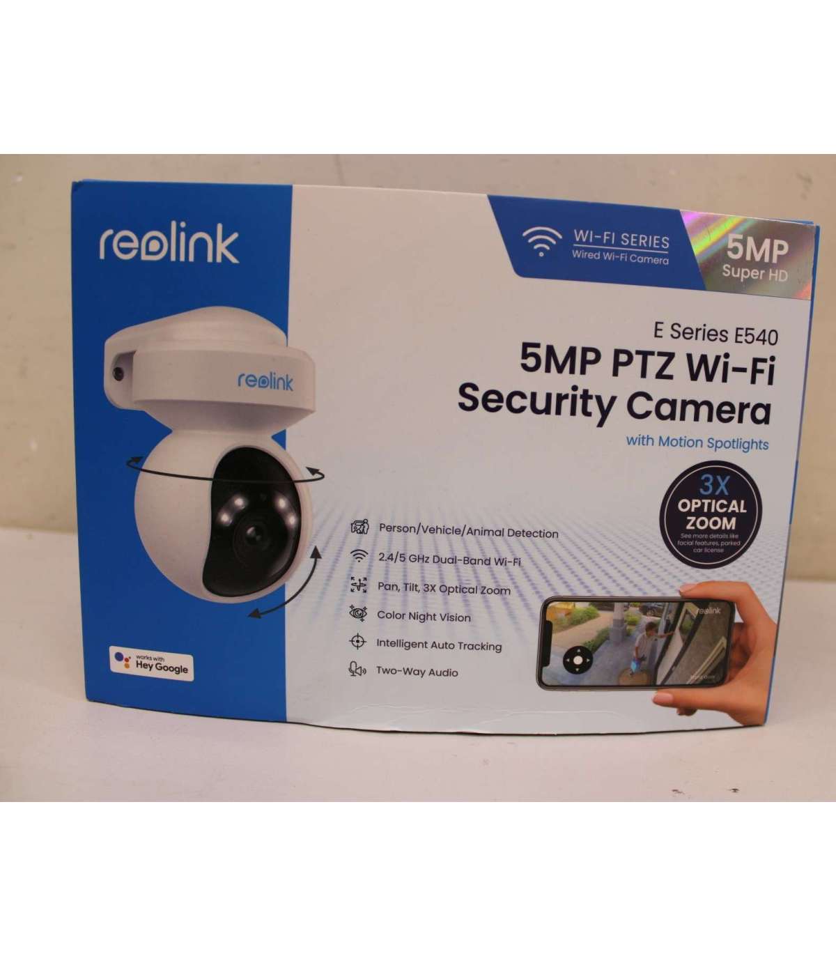 SALE OUT. Reolink E Series E540 Smart 5MP PTZ WiFi Camera with Motion Spotlights, White | Reolink | Smart WiFi Camera with Motion Spotlights | E Series E540 | 24 month(s) | PTZ | 5 MP | 2.8-8/F1.6 | IP65 | H.264 | Micro SD, Max. 256 GB | USED, DIRTY