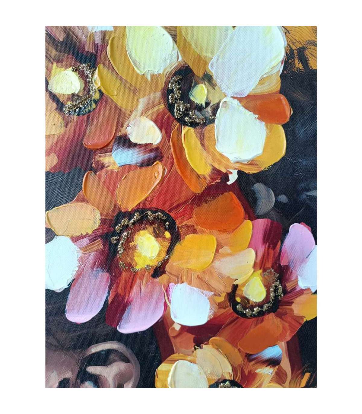Raamitud ja käsitsi ülemaalitud trükipilt lõuendil.