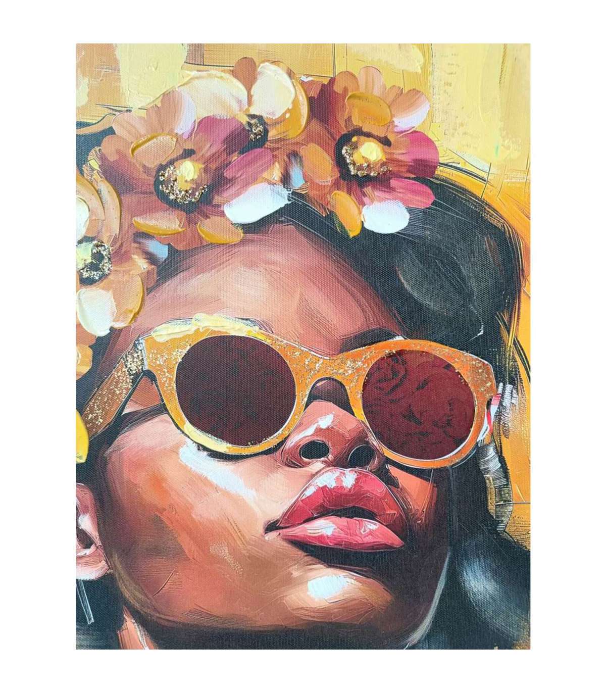 Raamitud ja käsitsi ülemaalitud trükipilt lõuendil.