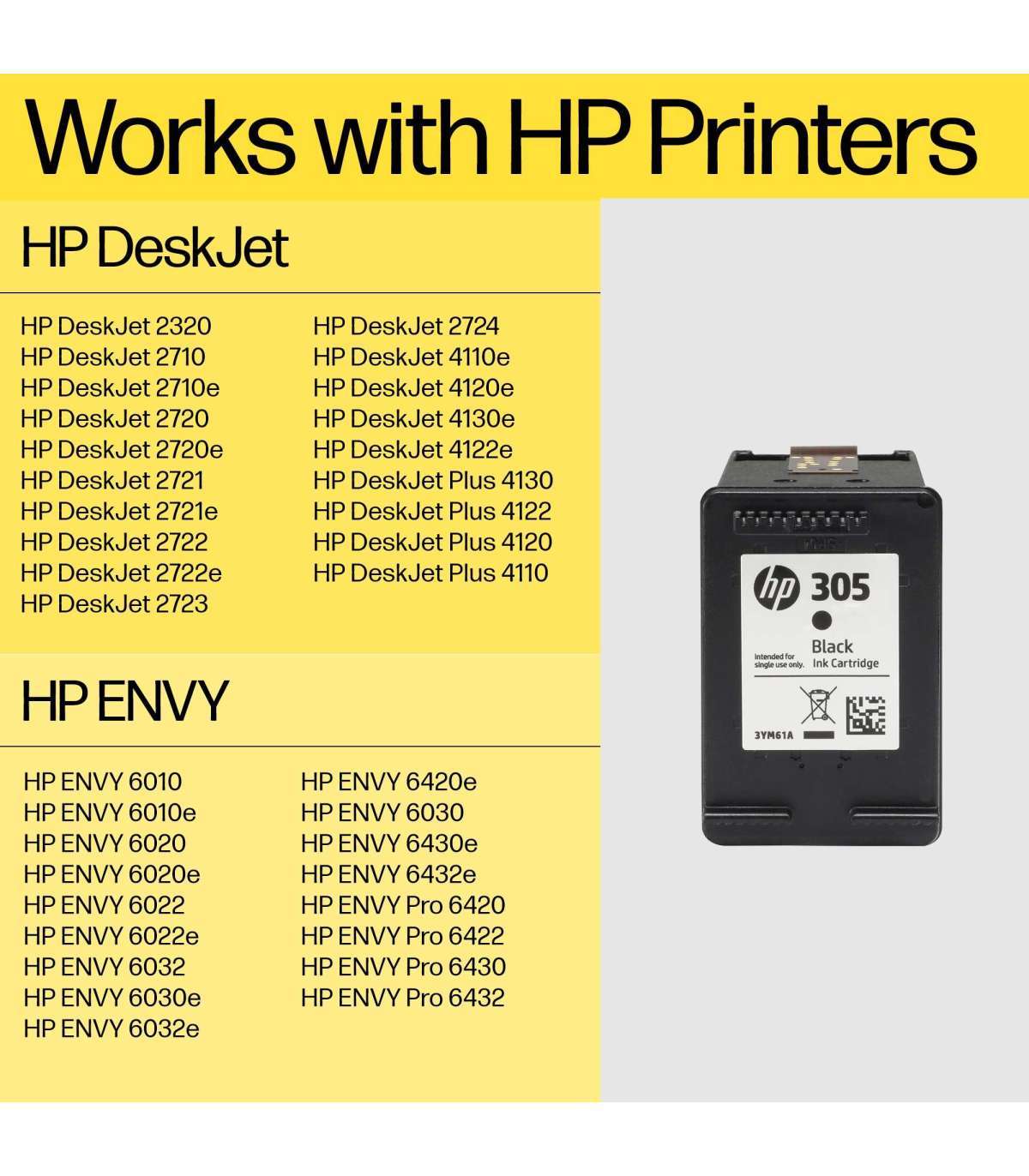 HP 305 Tri-Color Ink Cartridges, 100 pages, for HP DeskJet 2300, 2710, 2720, Plus 4100