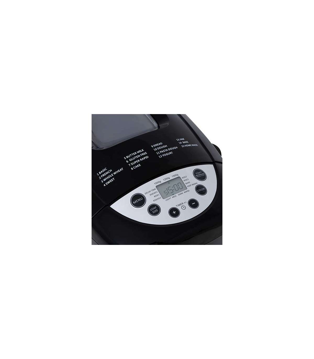 - Programs: Basic Bread; French bread; Wholewheat bread; Sweet bread; Butter Bread; Gluten-free bread; Fast growing bread; Dough; Kneading; Yeast dough; Pasta dough; Yogurt; James; Baking; Home made