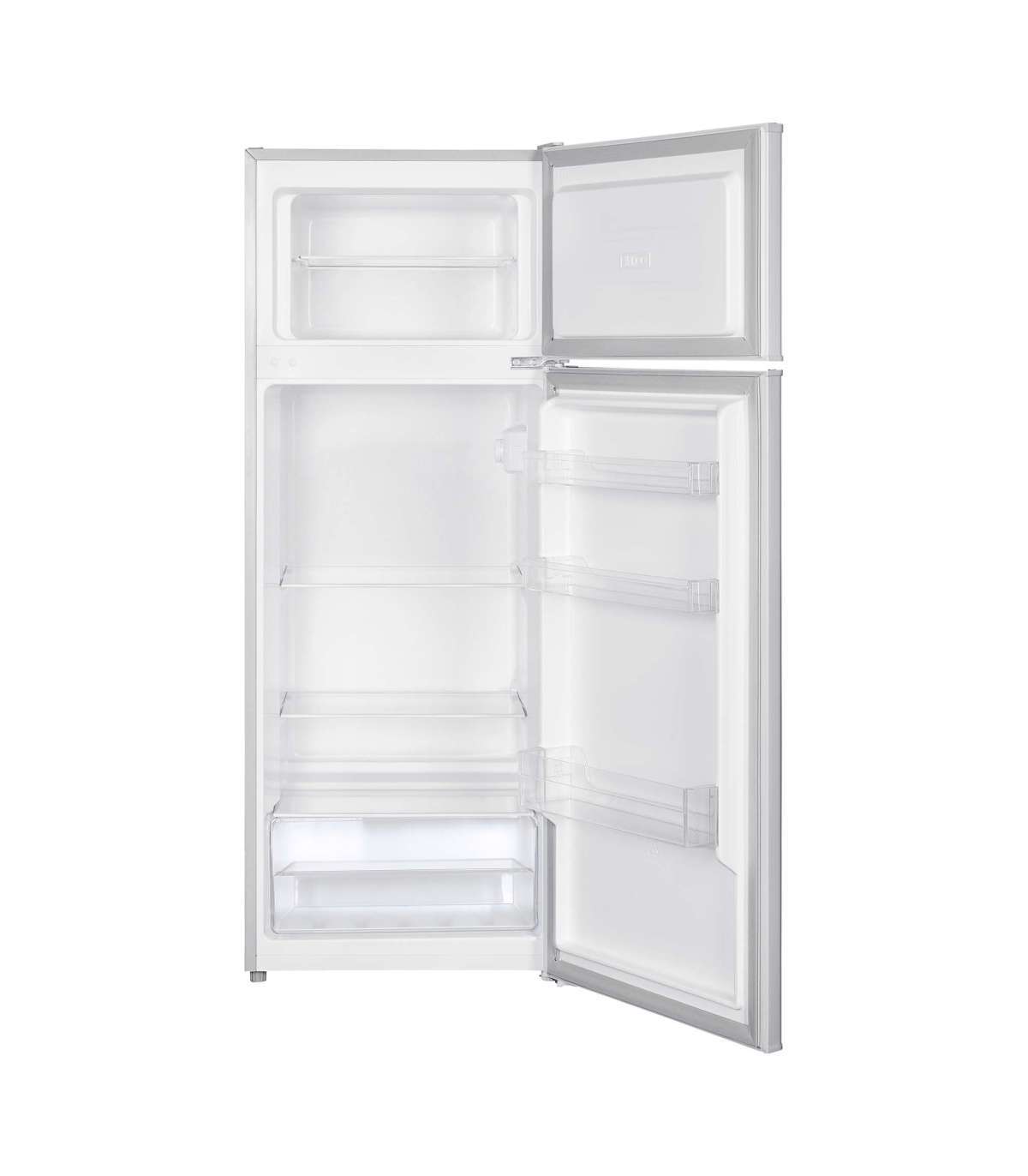 The shelves and compartments of the refrigerator allow flexible storage of food. The appliance has one fruit and vegetable drawer, three full-length door shelves, and three shelves in the refrigerated compartment.
