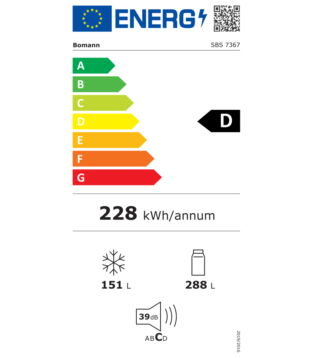 - Freezer volume, L