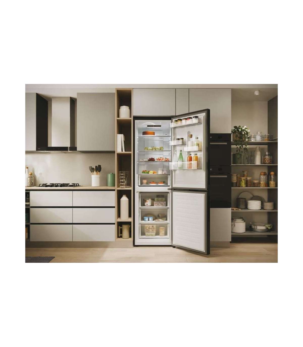 Candy ECN2CQTEB186 Refrigerator, E, Freestanding, Combi, Height 185cm, Fridge net 235 L, Freezer net 120 L, Black |