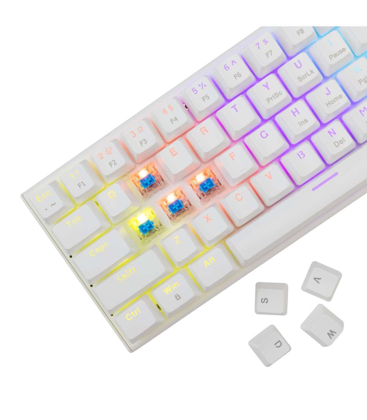 See kompaktne 63-klahviline klaviatuur säilitab originaali armastatud omadused, sealhulgas mehaanilised sinised lülitid ja 17 vikerkaarevalgusefekti.