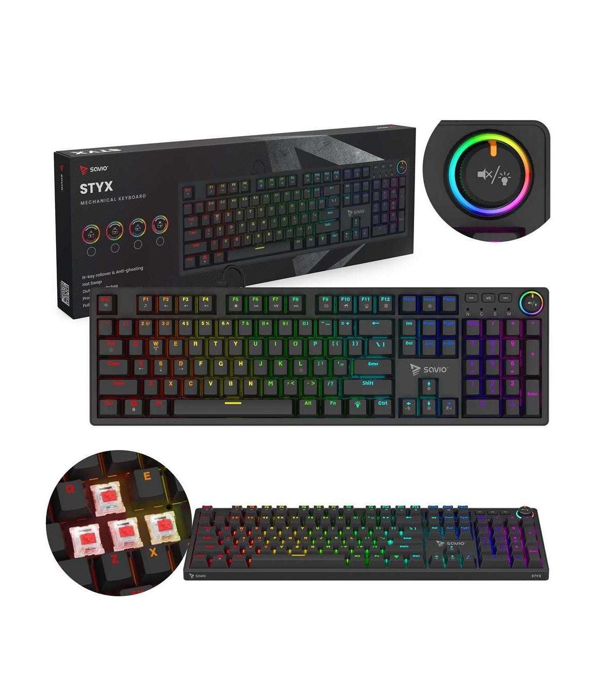 SAVIO STYX Mechanical Keyboard Outemu Red, Hot Swap, RGB