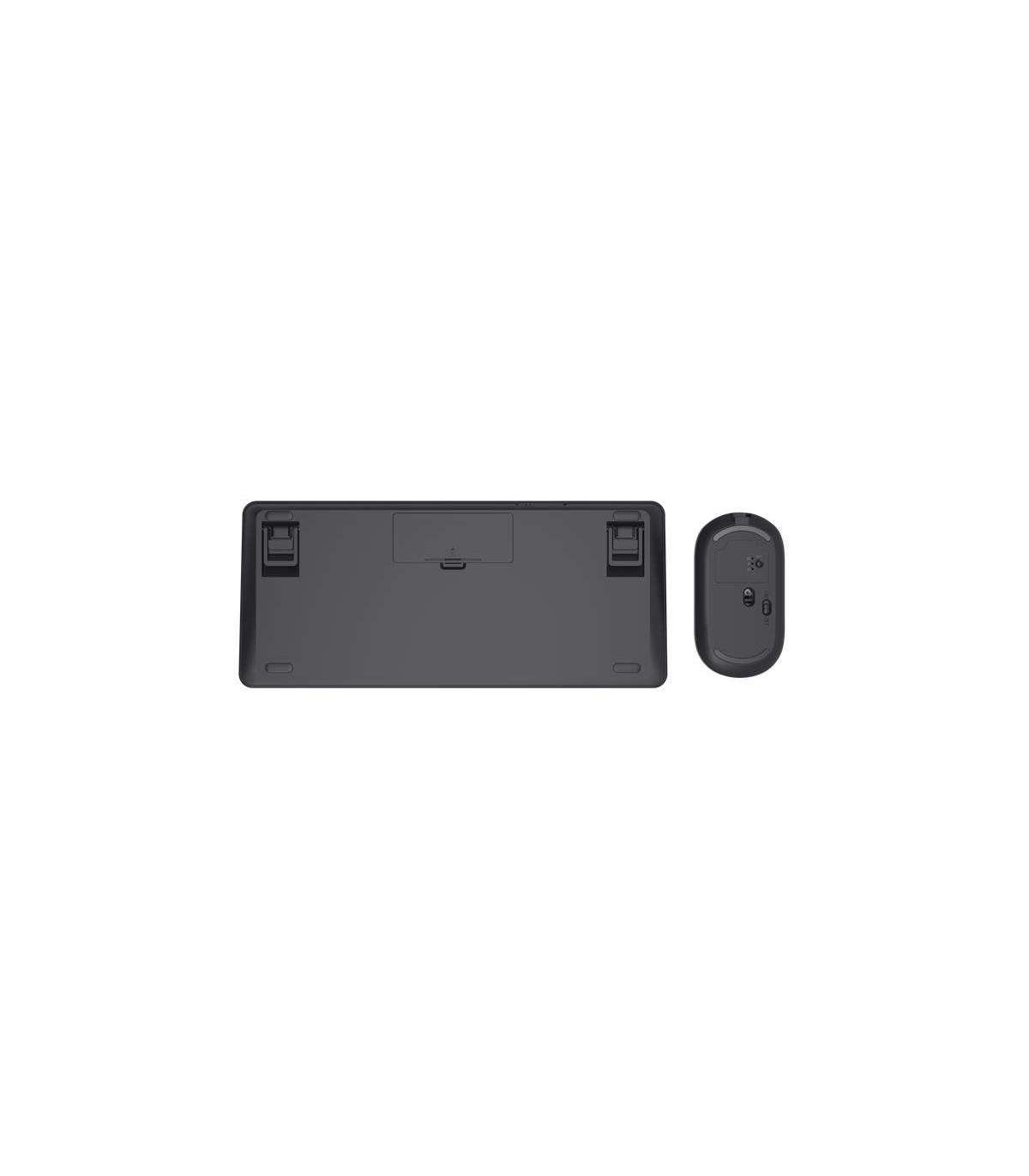 Wireless and rechargeable compact keyboard and mouse set with multi-device connection