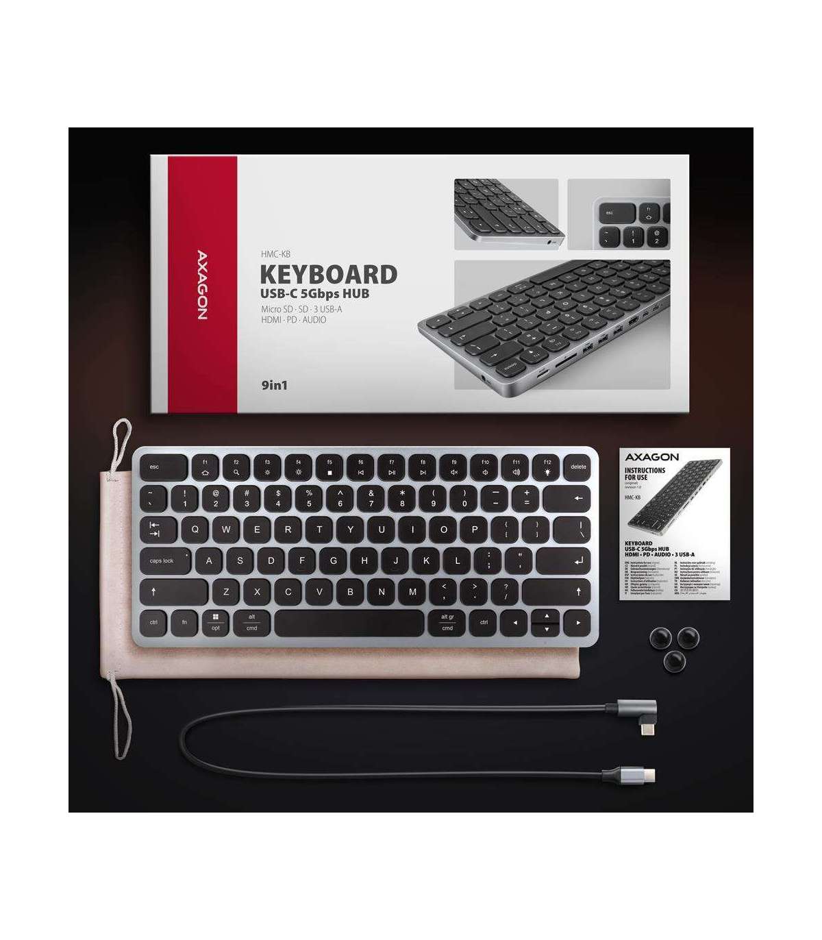 KEYBOARD + I/O HUB 9IN1/0.6M HMC-KB-US AXAGON