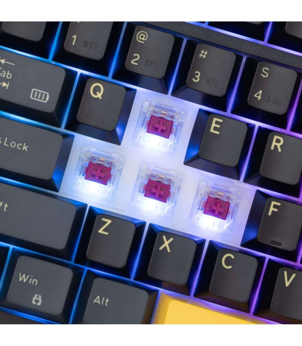 KTT Hot-Swap Wine Red mehaaniliste lülititega Excalibur tagab sujuva klahvivajutuse ja vastupidavuse üle 80 miljoni vajutuse.