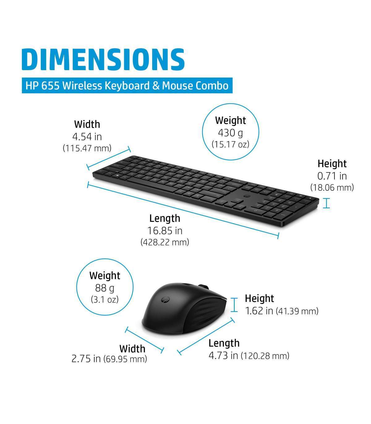 HP 655 Wireless Mouse Keyboard Combo, spill resistant - Black - US ENG