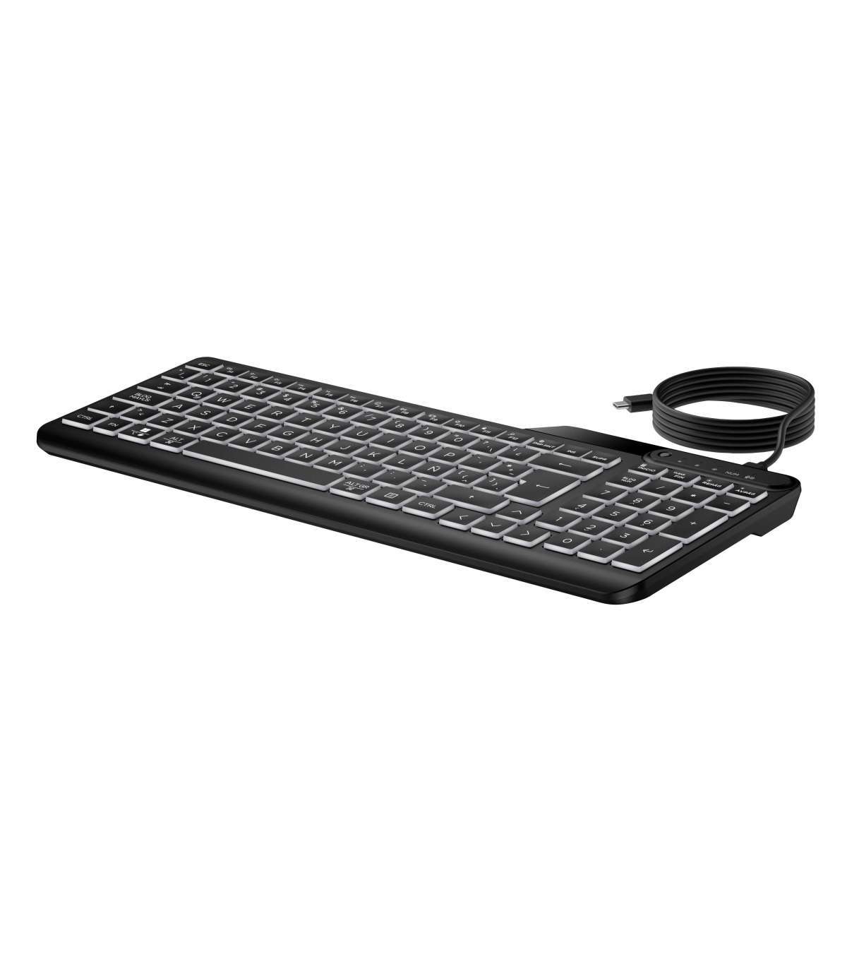 HP 405 Backlit USB-C Wired 24/7 Keyboard, Spill Resistant, Sanitizable, Programmable, Adjustable Tilt and LED brightness - Bl