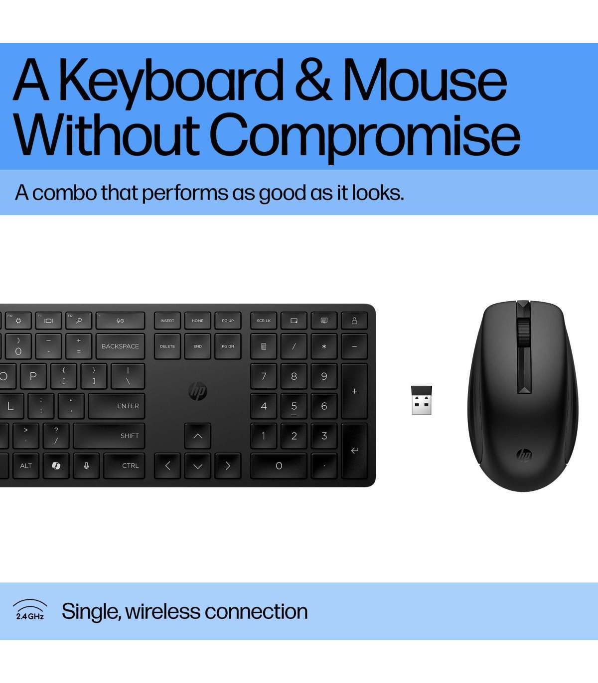 HP 655 Wireless Mouse Keyboard Combo, spill resistant - Black - ESTONIAN