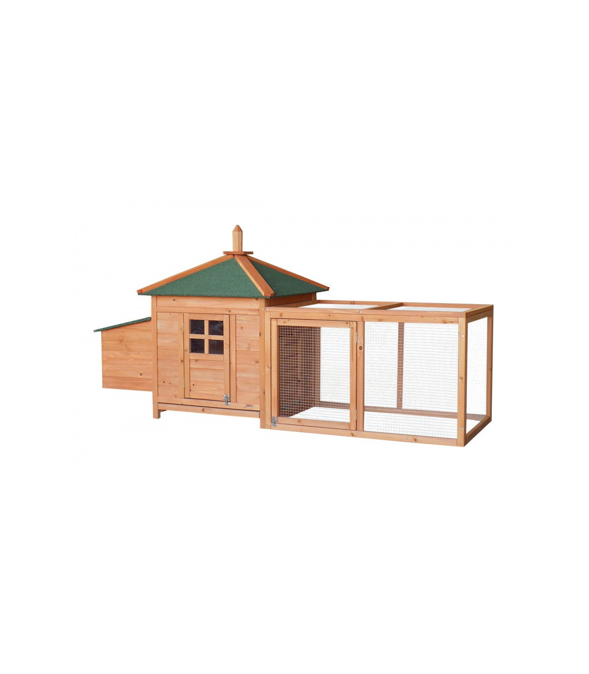 Куриный дом с сетчатым забором. Битумная крыша. Материал устойчив ель. Коллекция коробки яйцо (с возможностью открытия). Перекрываемый дверь.