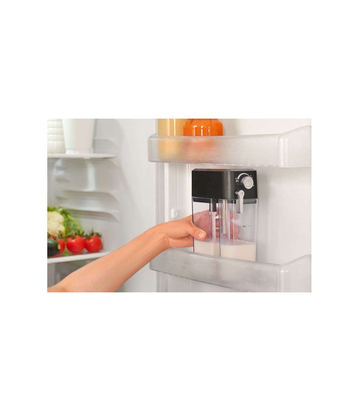 Transparent milk container with removable frothing device ensures easy cleaning