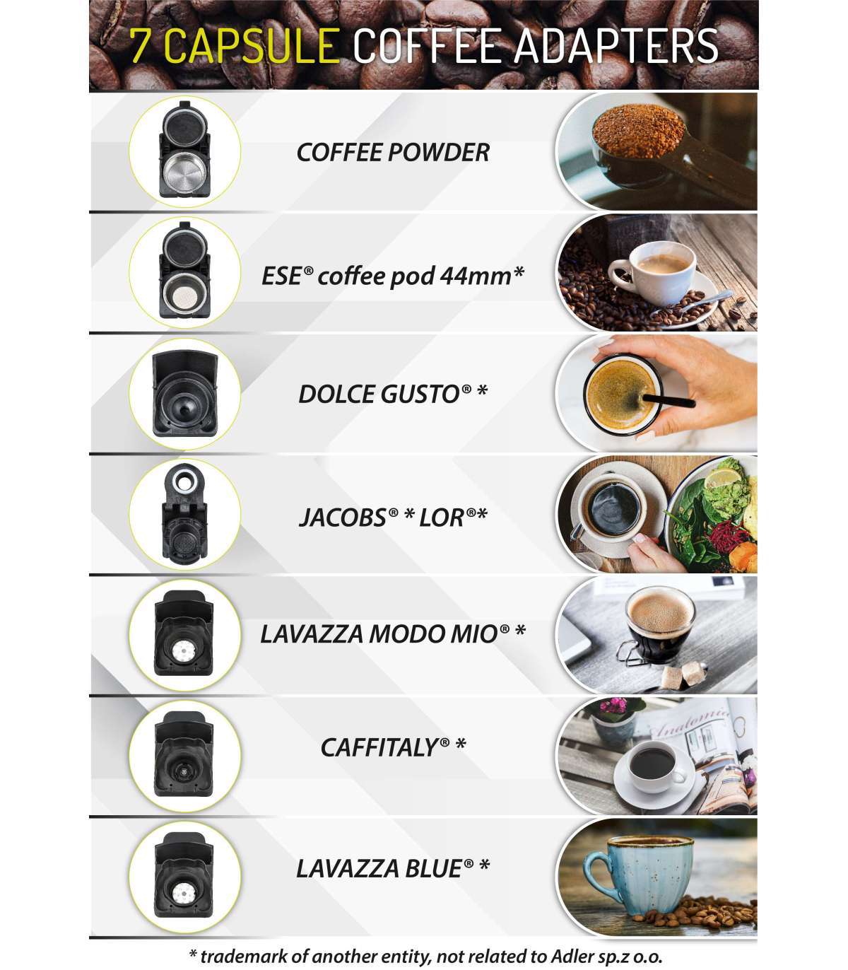 Camry | Multi-capsule Espresso machine | CR 4414 | Pump pressure 19 bar | Ground/Capsule | 1450 W | White/Black