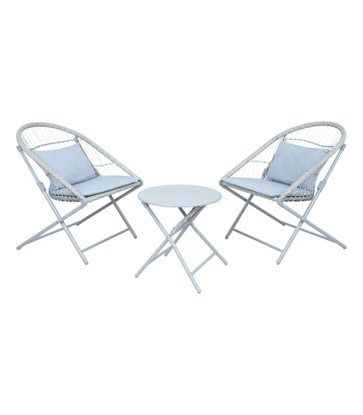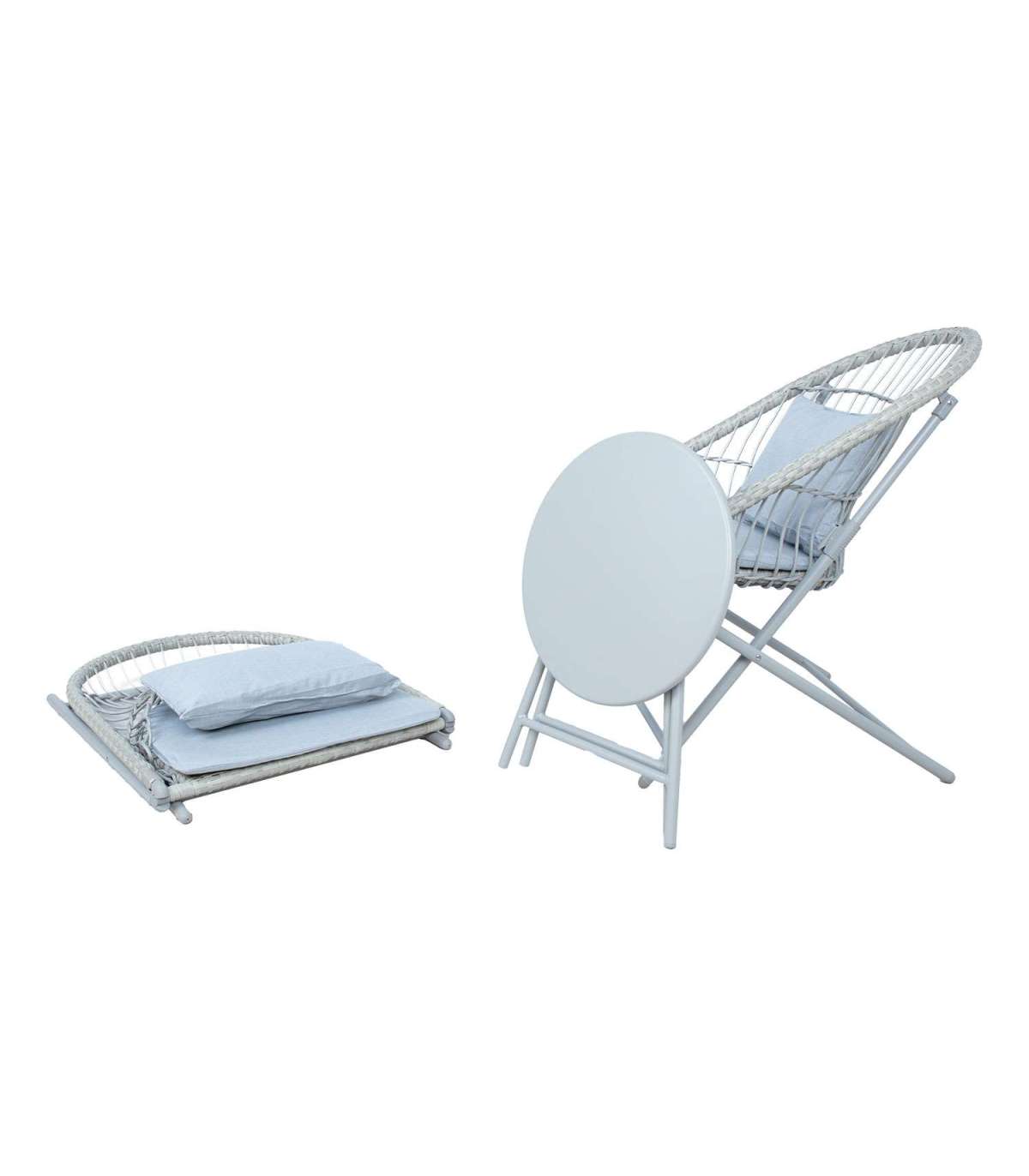 Kokkupandav rõdukomplekt YOLANDA 2 tooli ja laud, helehall.