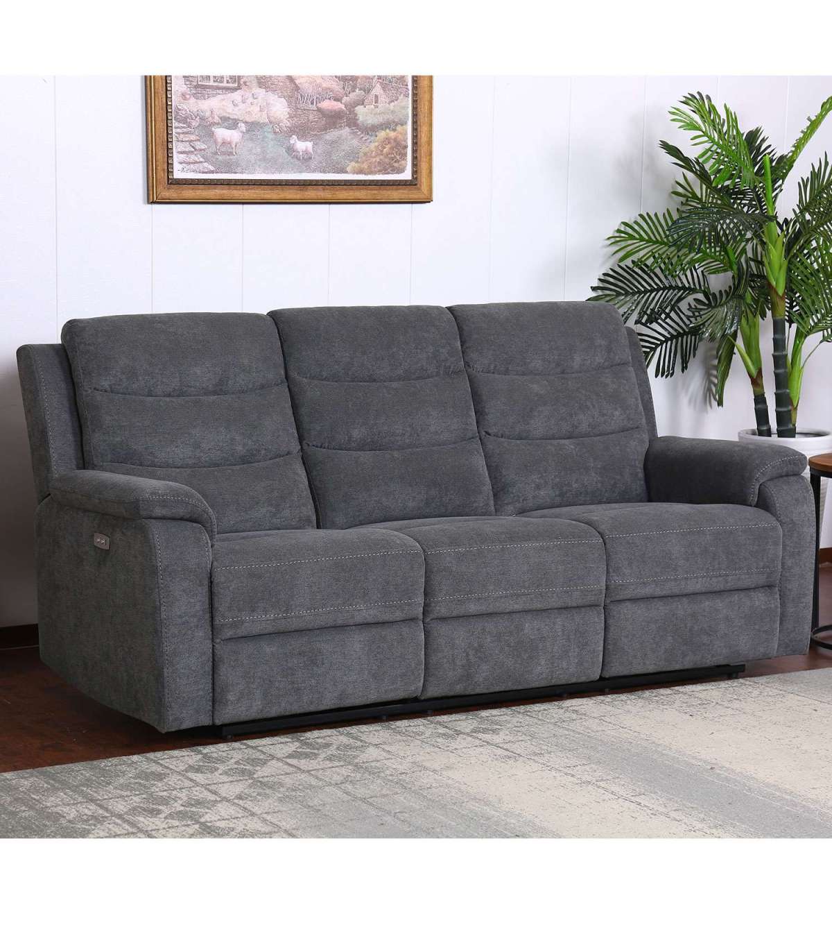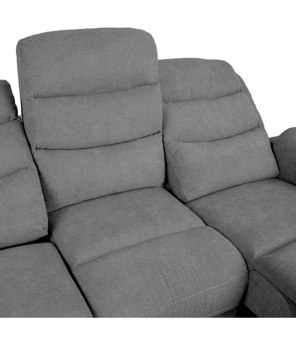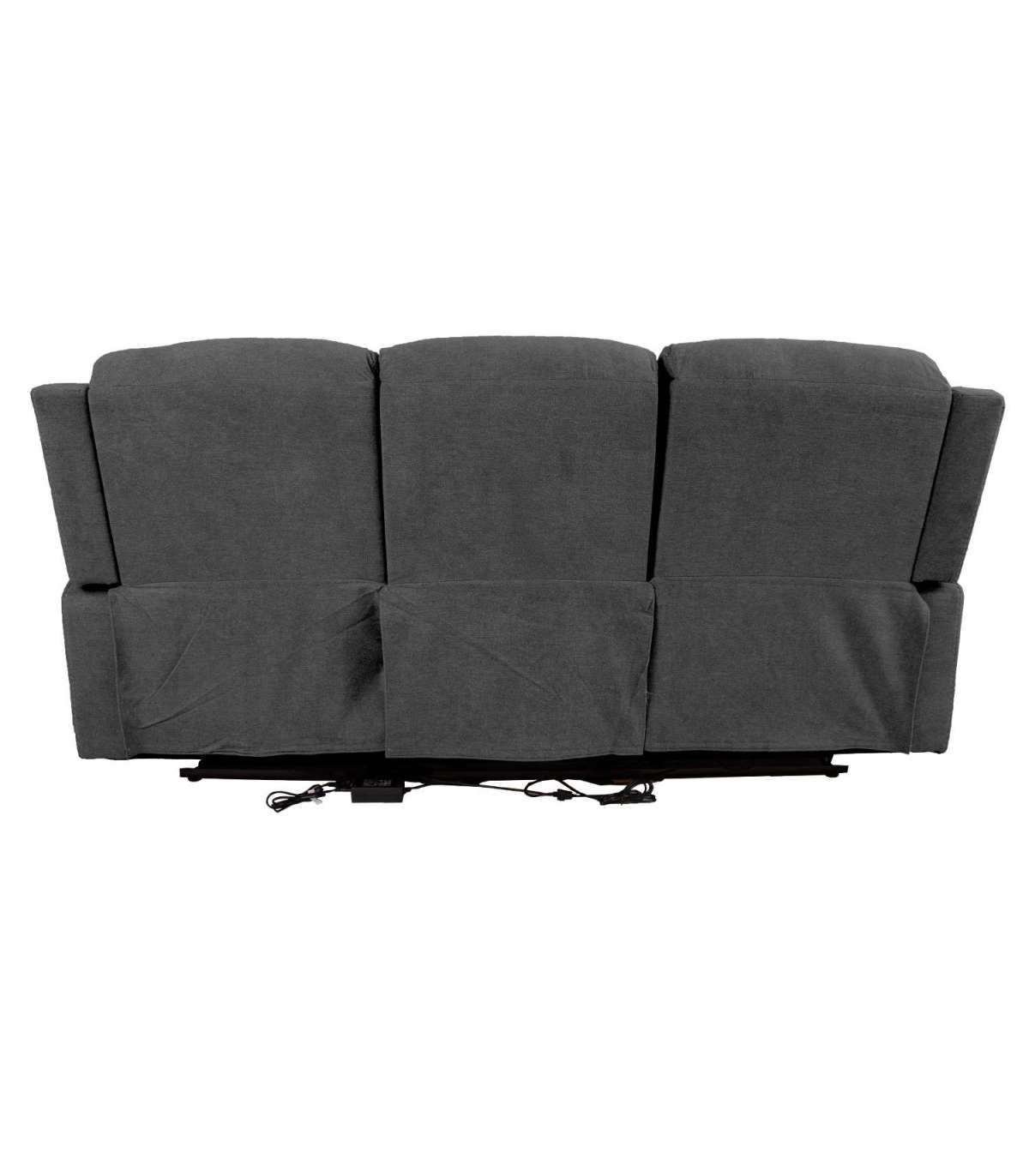 Положение спинки и подножки крайних сидений можно изменить с помощью электрического механизма. Когда подножка поднята, спинка плавно переходит в наклонное положение. Среднее сиденье не регулируется. Материал обложки: 100% полиэстер, ткань 30 000 Мартиндейл. Каркас и подвеска: дерево, фанера, металл. Обивка: пенополиуретан.