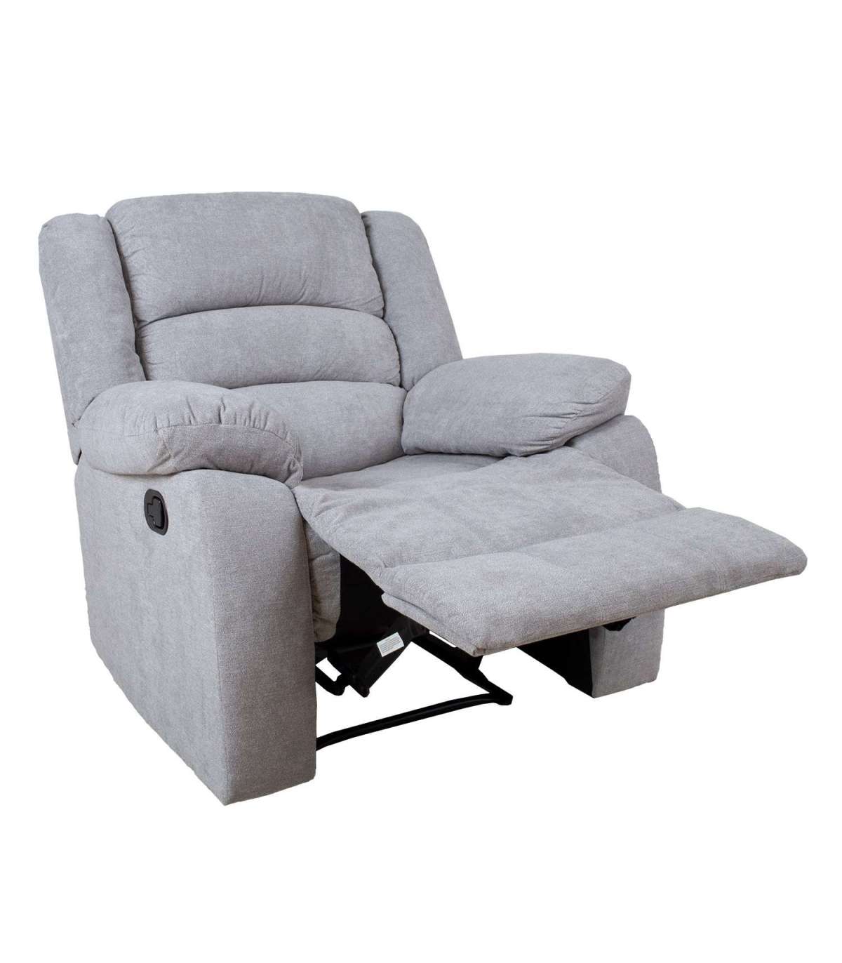 Кресло-реклайнер MALINA с ручным механизмом, светло-серый. Положение подножки можно изменить с помощью ручного механизма. Когда подножка поднята, спинка плавно перемещается. Чтобы поднять подставку для ног, потяните вверх рычаг справа снаружи кресла. При нажатии на подставку для ног она автоматически фиксируется в исходном положении. Материал покрытия: ткань 100% полиэстер, Martindale 20 000. Каркас: дерево, металл. Обивка: пенополиуретан 20-24кг/м?. Габаритные размеры кресла 92x90xH101см. Ширина сиденья 50 см, глубина сиденья 52 см, высота сиденья 50 см. Высота спинки 67см. Высота подлокотника от земли 67см.