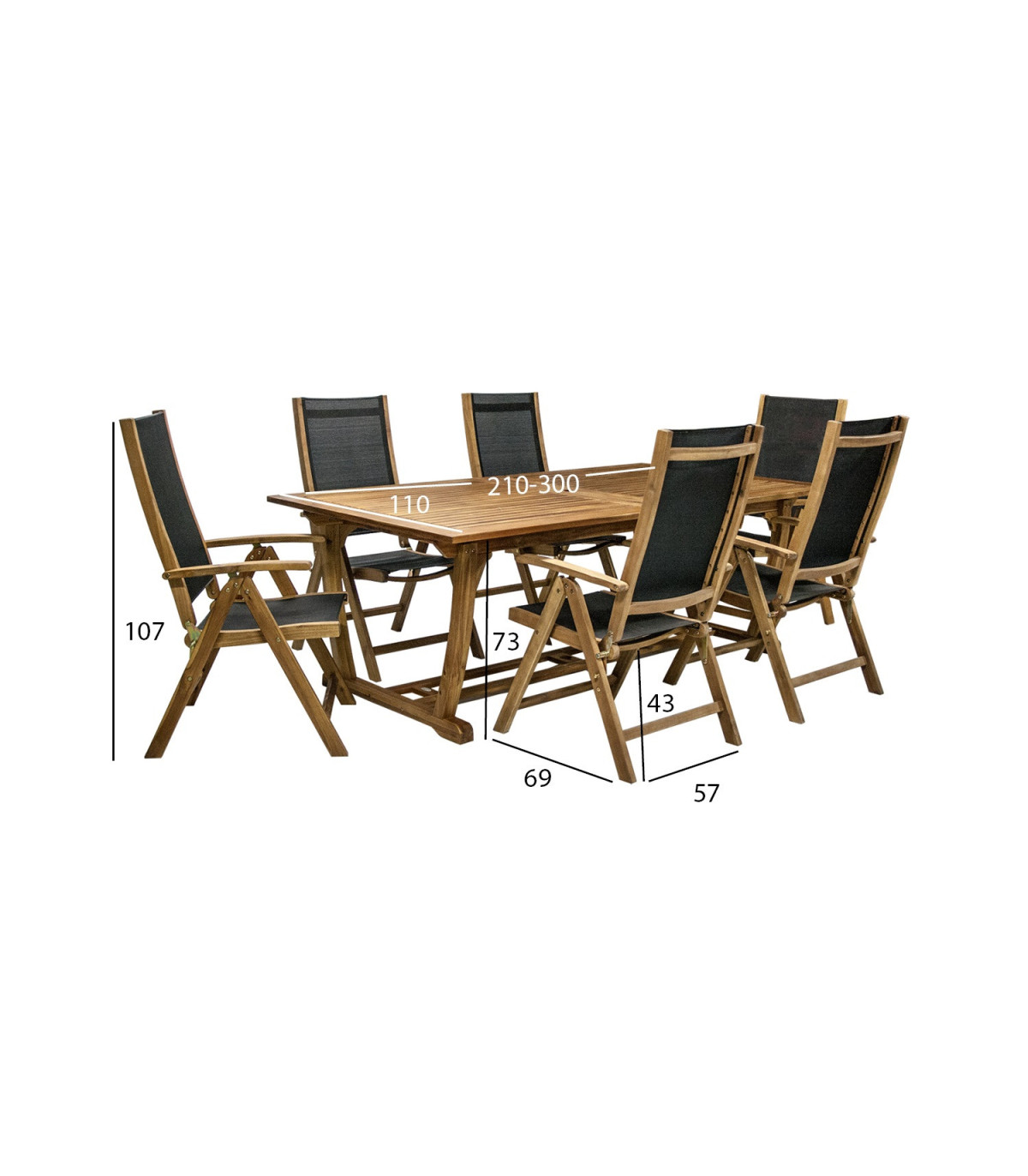 Садовая мебель FUTURE стол и 6 стульев (2782), 210/300x110x73cм, раздвижный, дерево: акация, обработка: промасленный