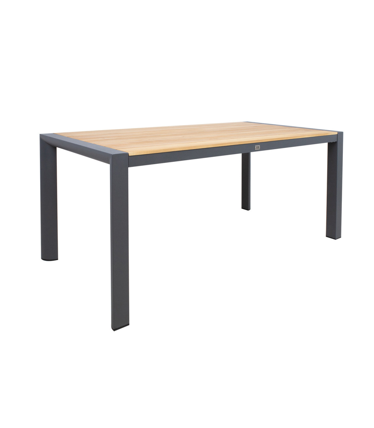Комплект TAMPERE стол, 4 стула. Столешница изготовлена из ламелей из натурального тикового дерева. Каркас стола выполнен из алюминия, покрытого порошковой краской темно-серого цвета. Размеры алюминиевой трубки 70x70x1,5 мм. Сиденье и спинка кресла изготовлены из текстильного материала черного цвета. Подлокотники изготовлены из тикового дерева. Каркас стула изготовлен из алюминия, покрытого порошковой краской темно-серого цвета. Размеры алюминиевой трубки 40x25x1,5 мм. Стул можно штабелировать, что упрощает хранение. Размеры стола 160x80xH75см, стула 56x63xH90см.