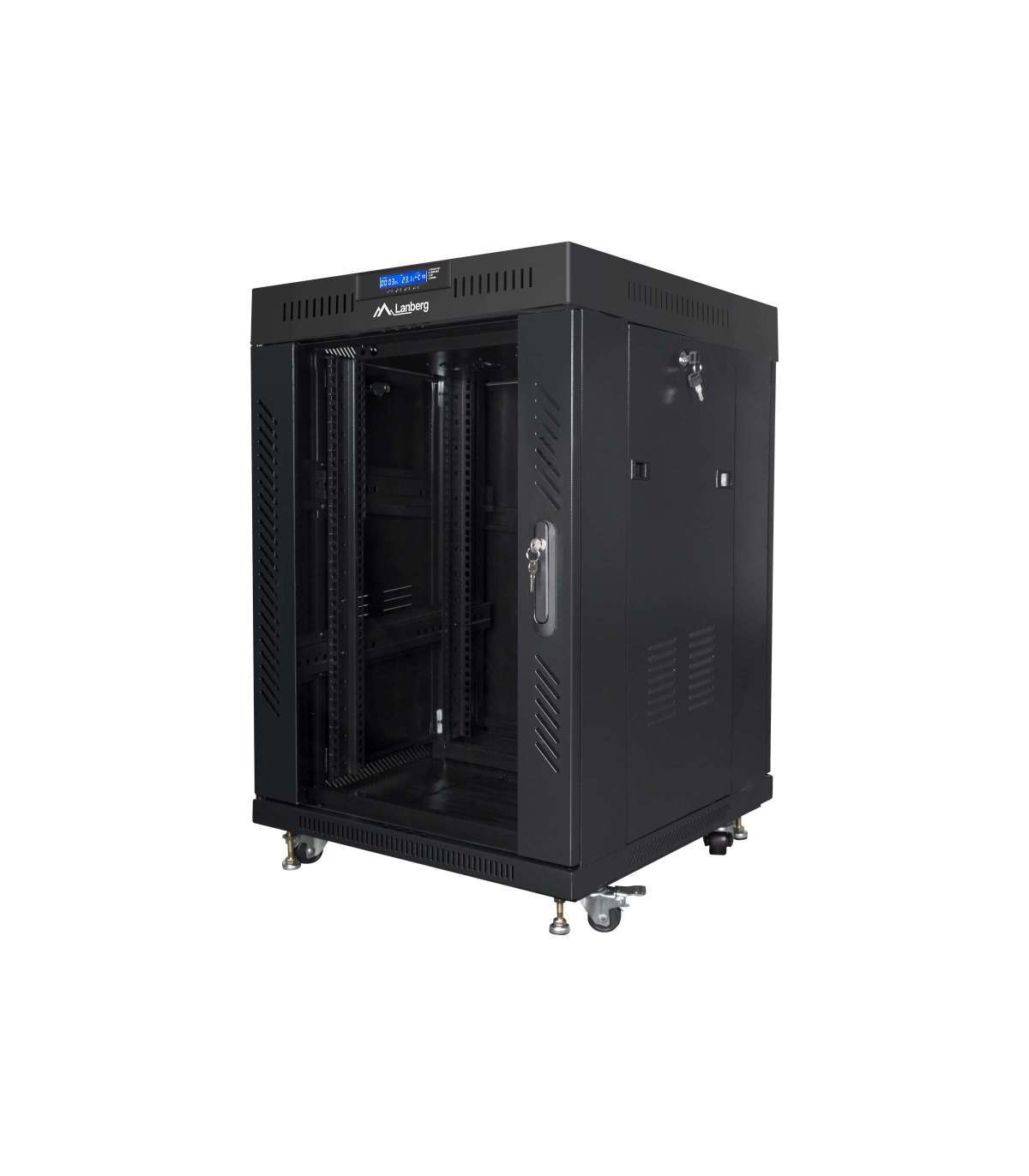 Lanberg Rack cabinet 19" free-standing 15U/600x600 (flat pack) with glass door, LCD FF01-6615-12BL Black