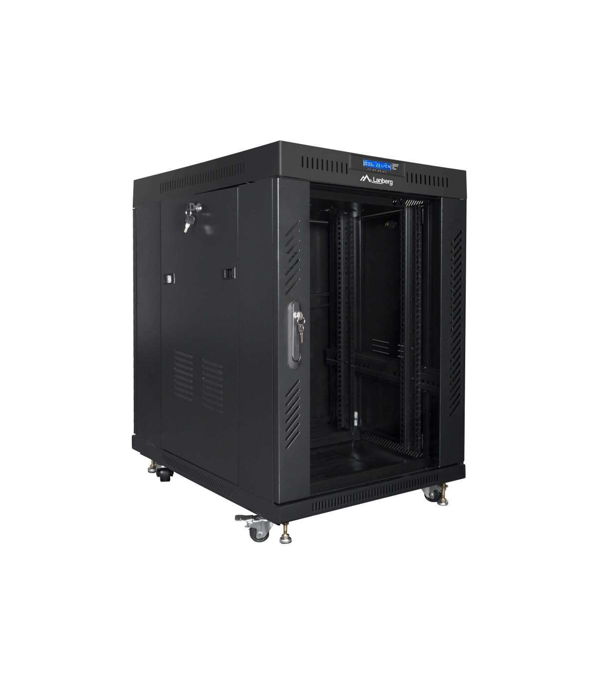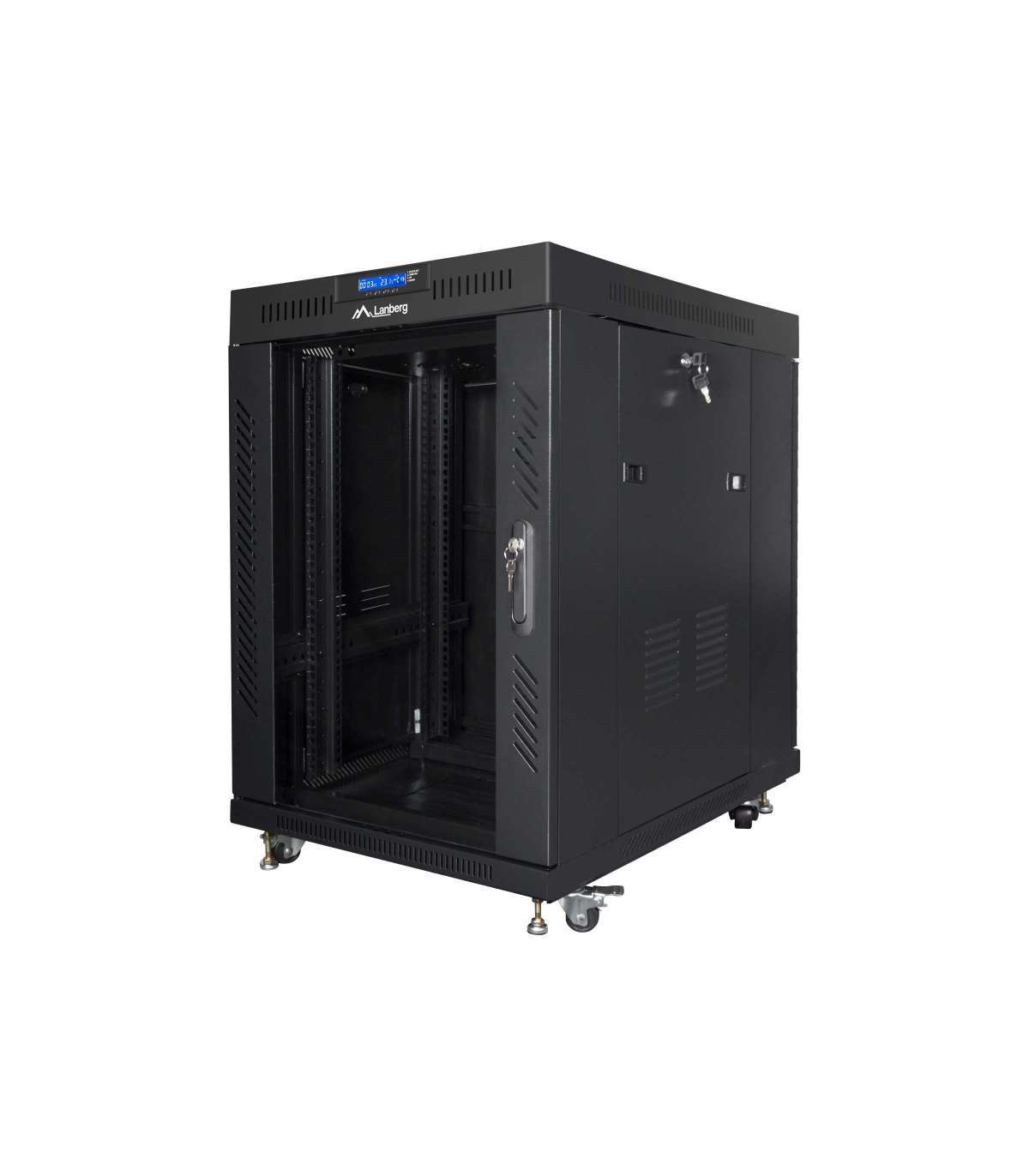 Lanberg Rack cabinet 19" free-standing 15U/600x800 (flat pack) with glass door, LCD FF01-6815-12BL Black