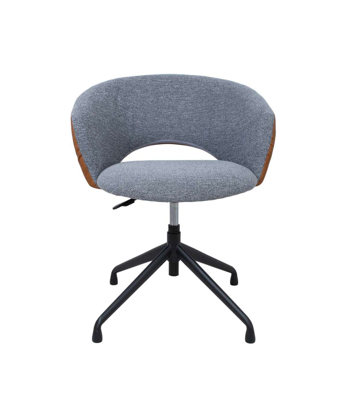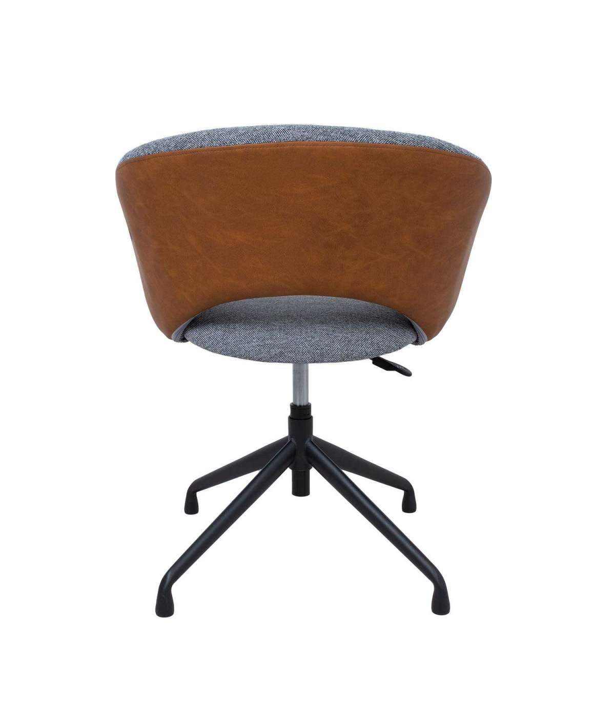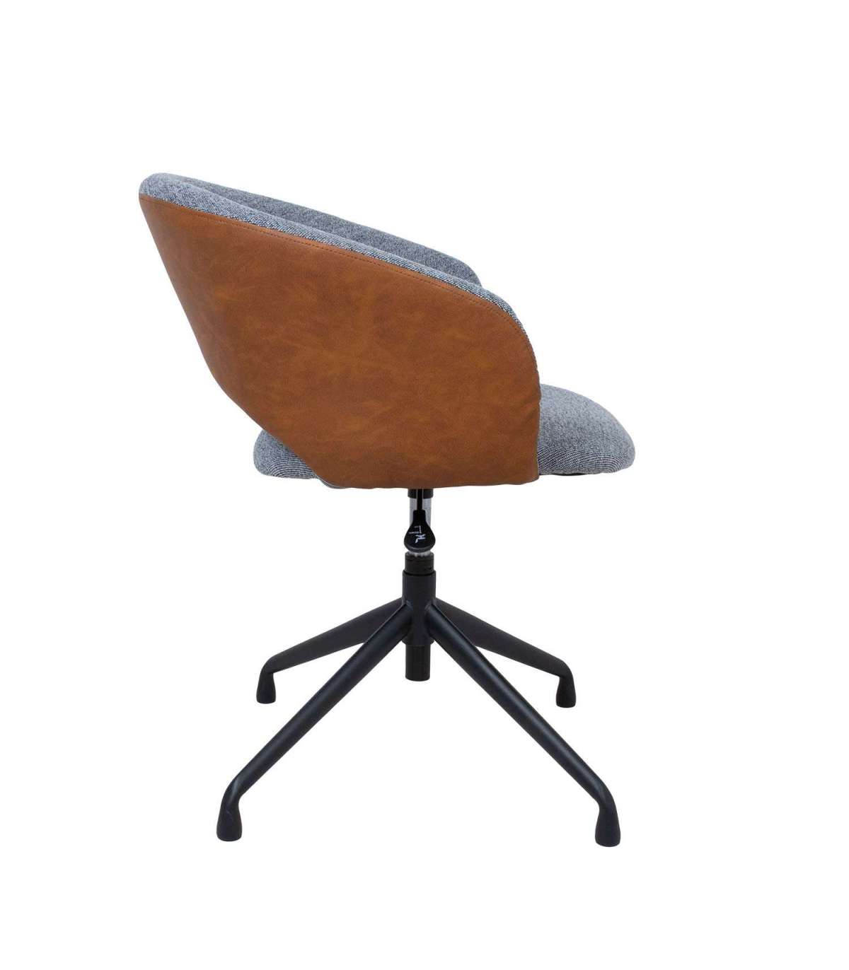 Töötool KARINA ilma ratasteta 62x60xH68-74cm, hall/helepruun. Tooli iste ja seljatugi on kergelt polsterdatud ja kaetud halli polüesterkangaga. Seljatoe väliskülg on kaetud helepruuni kunstnahaga. Tooli istme kõrgus on reguleeritav gaasamordi abil. Tooli neljaharuline metallist jalg on viimistletud musta pulbervärviga.