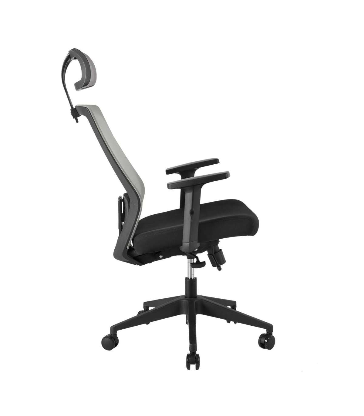 Рабочий стул JOY черный/серый. Материал покрытия: сиденье: полиэстер. Спинка и подголовник: покрытие: сетка-ткань из полиэстер. Эргономичная рама спинки из пластика, цвет: чёрный. Механизм и настройки: мультифункциональный механизм, фиксация трёх позиций. Регулируемая опора для поясницы. Глубина сиденья регулируемые +4,5см, высота сиденья регулируется с помощью газового амортизатора. Подлокотники: материал: пластик с мягким полиуретановым покрытием. Подлокотники и подголовник: высота регулируется. Чёрная крестовина из пластика с 5-ответвлениями R34см, 60мм пластиковые колеса. Размеры: высота 115-125см, ширина сиденья 50см, глубина 50см, высота сиденья 46-56см. Дополнительная информация: предельный вес 120кг.