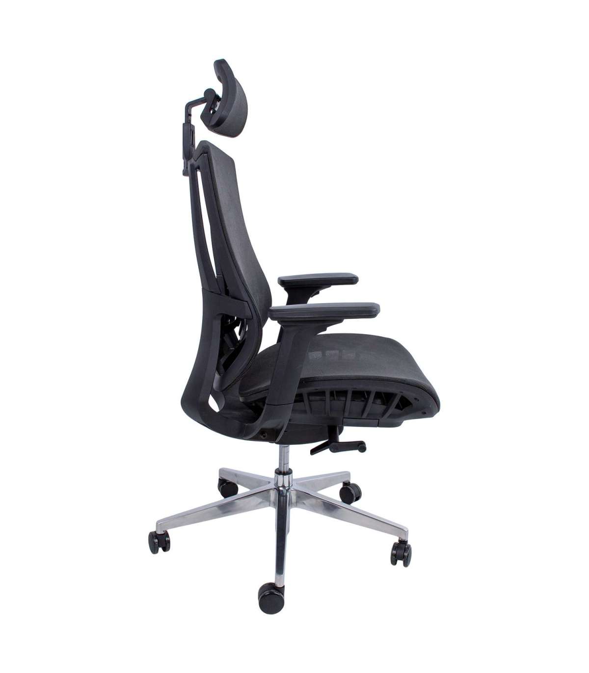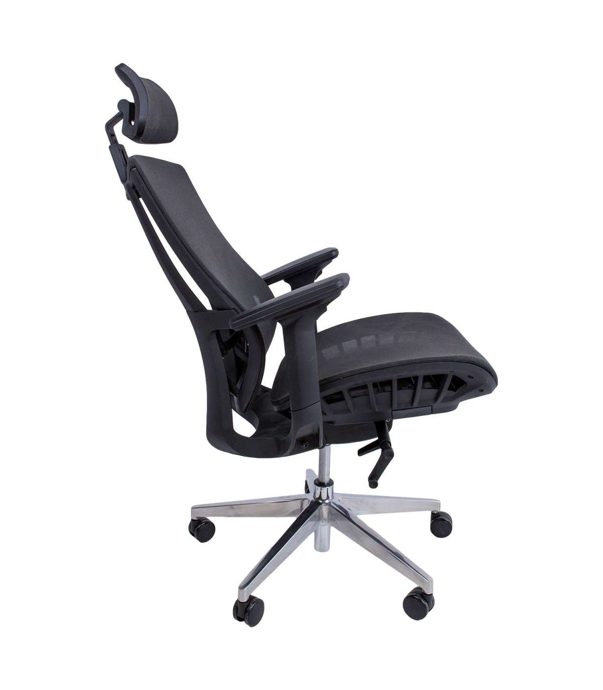 Рабочий стул FLEX черный. Эргономичное рабочее кресло FLEX удобно и прочно. Стул покрыт сеткой из полиэстера, 50 000 Мартиндейл. Кресло имеет многофункциональный механизм, фиксируемый в четырех положениях. Регулируемая поясничная опора. Пневматическая регулировка сиденья по высоте. Черные пластиковые подлокотники с мягкими подушечками из полиуретана. Высота (17-24 см), глубина и угол наклона подлокотников регулируются. Высота и угол наклона подголовника регулируются. Основание из полированного алюминия с 5 зубцами, R35см. Стул имеет нейлоновые колесики, 60 мм. Высота 116-126см, ширина сиденья 50см, глубина 50см, высота сиденья 48-57см. Размеры изделия 70x70xH116-126см. Грузоподъемность 130 кг.
