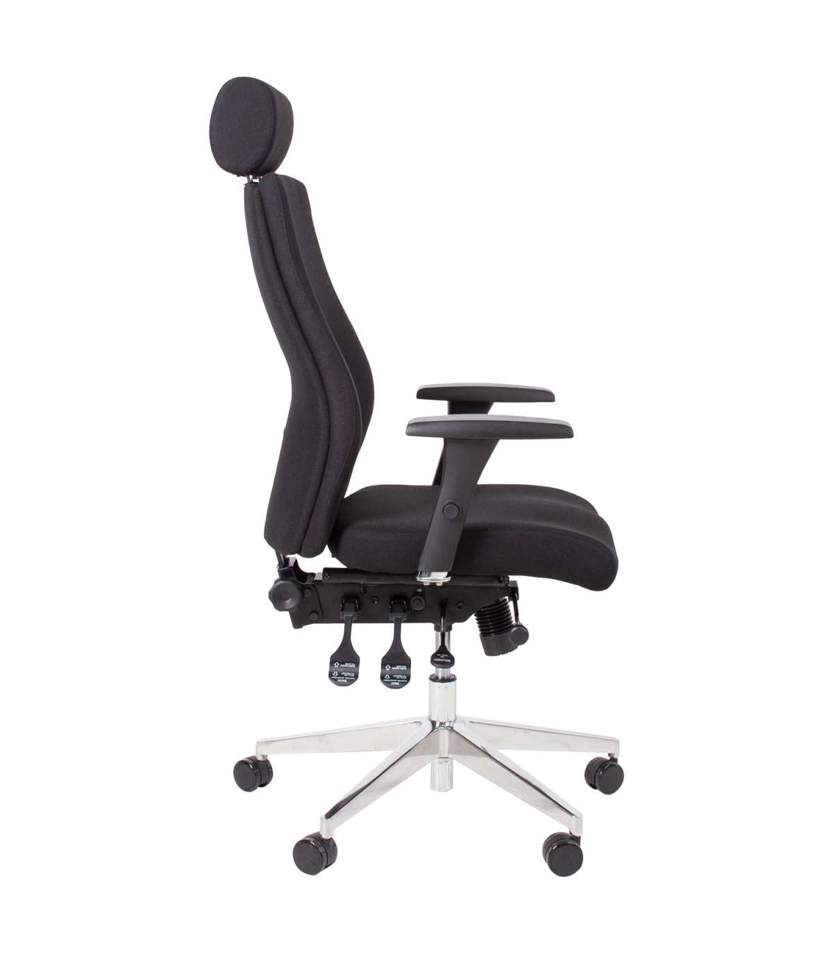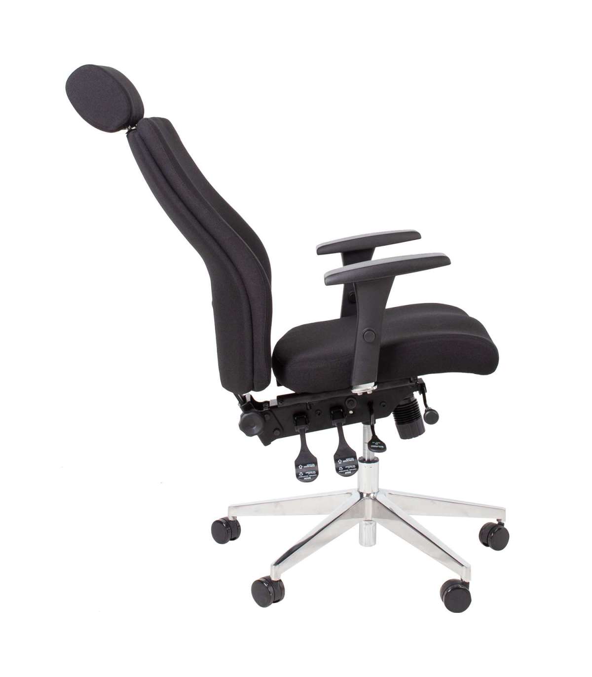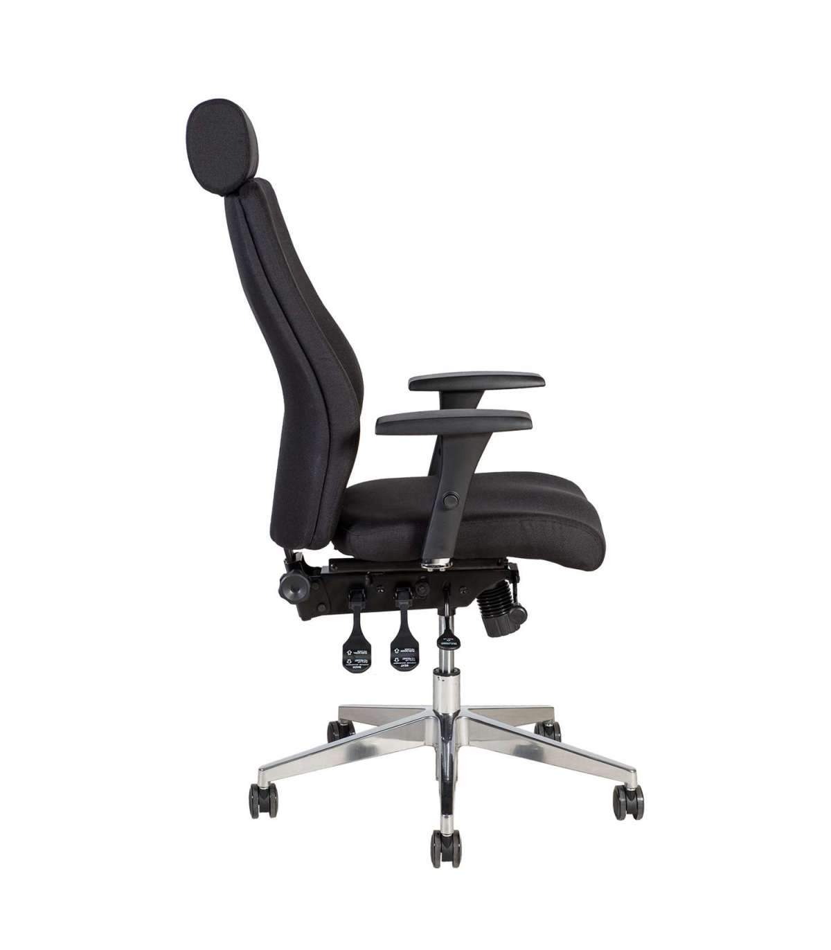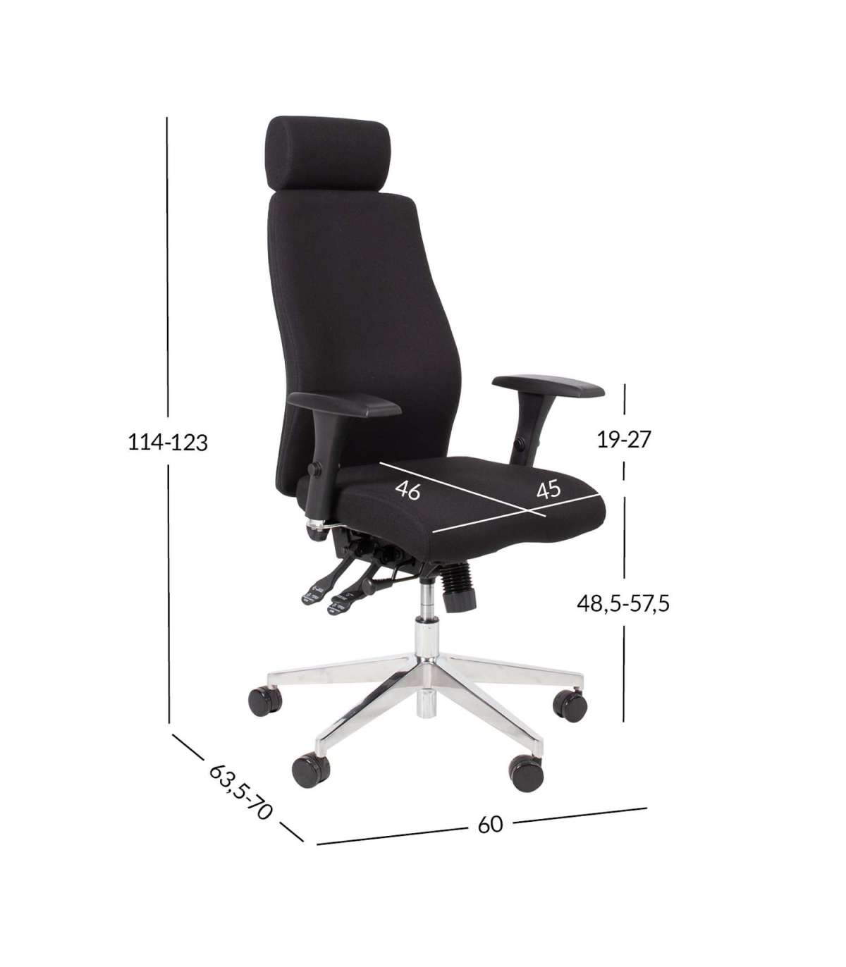 Рабочий стул SMART EXTRA черный. Материал покрытия: сиденье и спинка: полиэстер, 130 000 Martindale, цвет: чёрный. Механизм и настройки: мультифункциональный механизм, глубина сиденья и высота спинка регулируется, высота сиденья регулируется с помощью газового амортизатора, сиденье имеет наклон вперёд. Подлокотники: материал: пластик с мягким полиуретановым покрытием, регулировка высоты и глубины. Подголовник: высота и угол наклона регулируется. Крестовина: полированная алюминиевая крестовина. Колеса: резиновые колеса диаметром 60мм, диаметр штифта: 11мм. Размеры: высота 114-123см, высота сиденья 48,5-57,5см. Дополнительная информация: предельный вес 136кг.