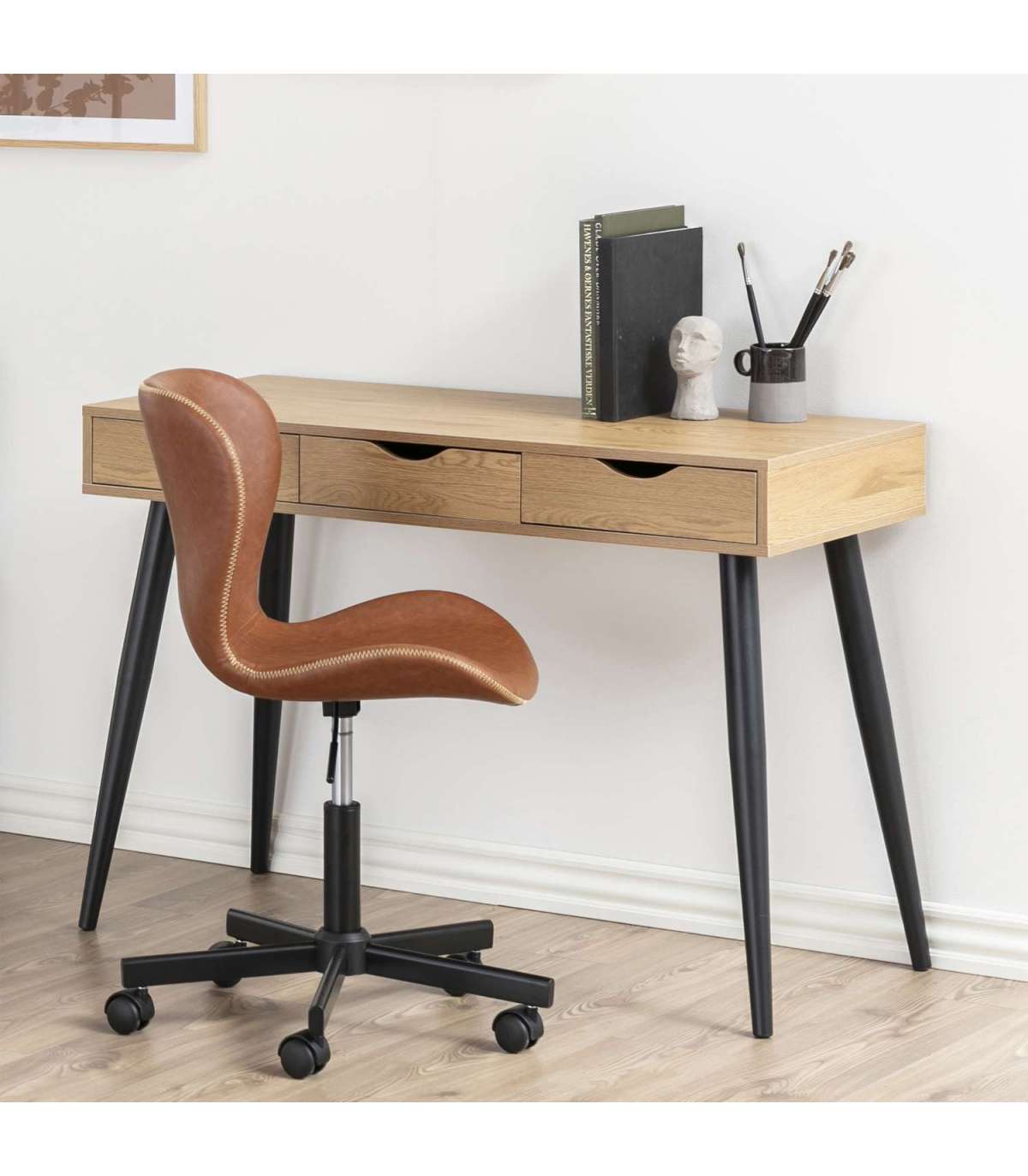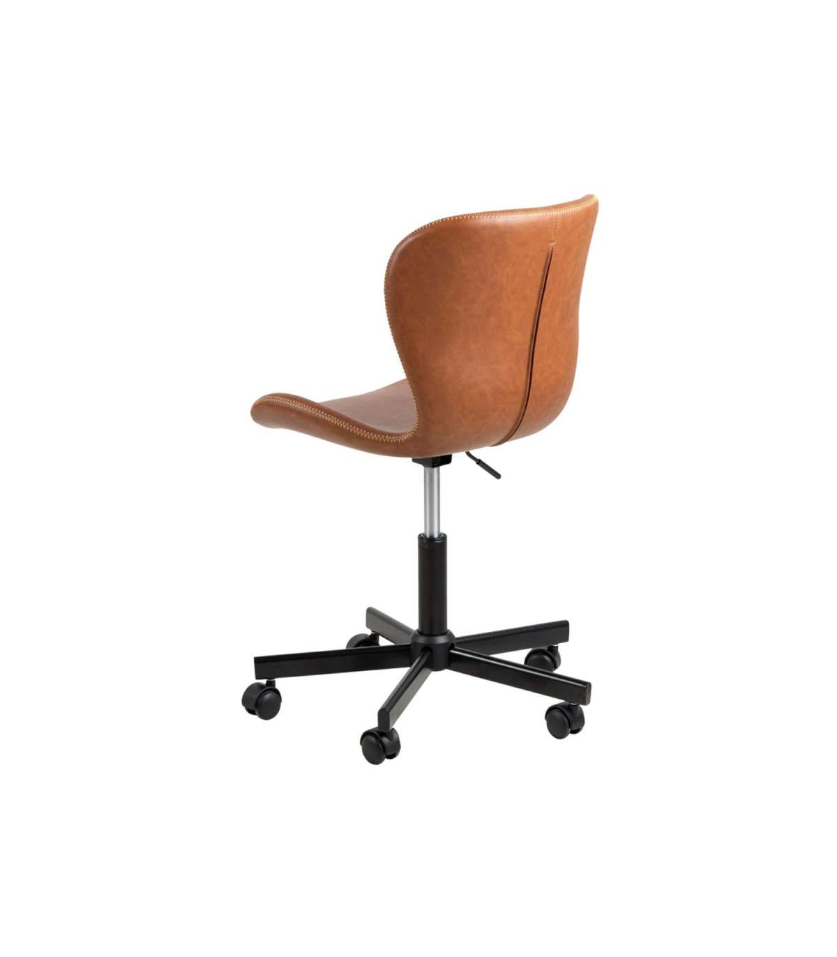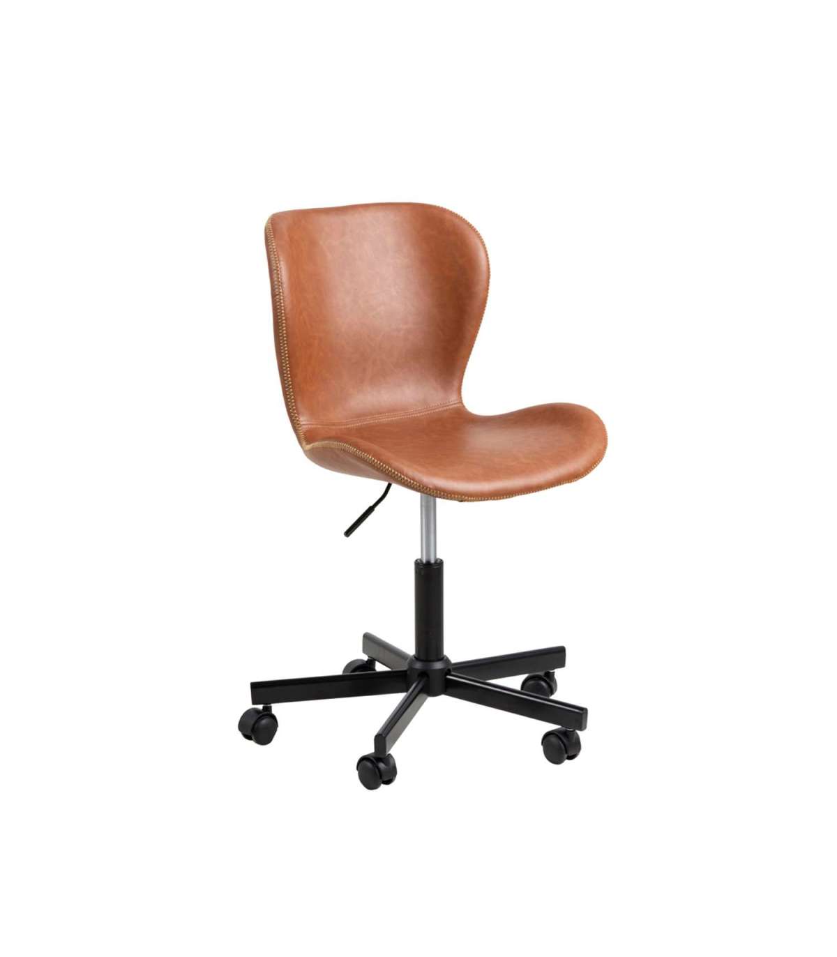 Рабочий стул BATILDA бренди. Сиденье и спинка обтянуты имитацией бренди. Ножка сделана из черного металла. Высота сиденья регулируется от 44,5 до 51,5 см. Глубина сиденья 40 см, ширина сиденья 48 см, высота спинки 38 см. Размеры изделия 48x54xH87см. Максимальный вес кресла - 110 кг.