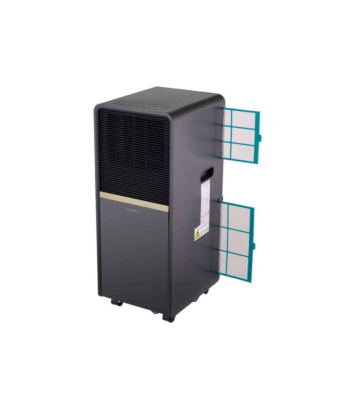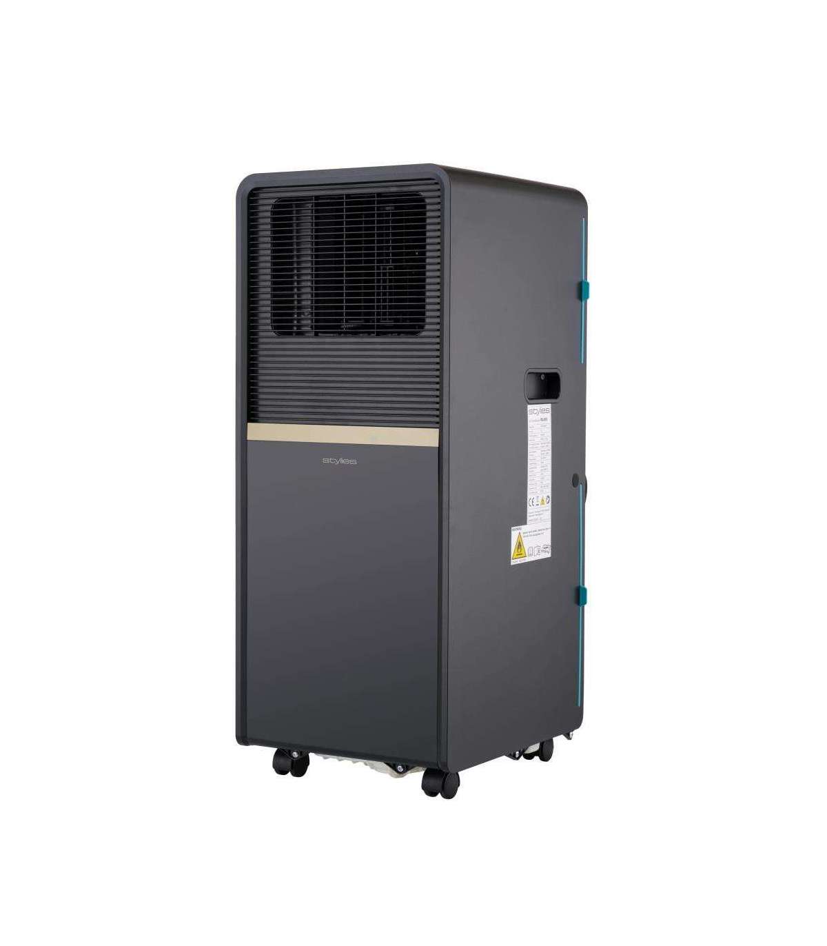 When temperatures in your home become almost unbearable, you urgently need to cool down. The Polarix air conditioner, with 9,000 BTU, offers a quick and flexible solution! Its low energy consumption (energy class A), a 24-hour timer, and a remote control are just some of the features that set it apart, as are additional fan and dehumidification modes. Thanks to its casters, the Polarix can be used immediately anywhere cooling is needed. Also significant is its Swiss-designed design, which exudes style and sophistication with elegant anthracite and luxurious gold.