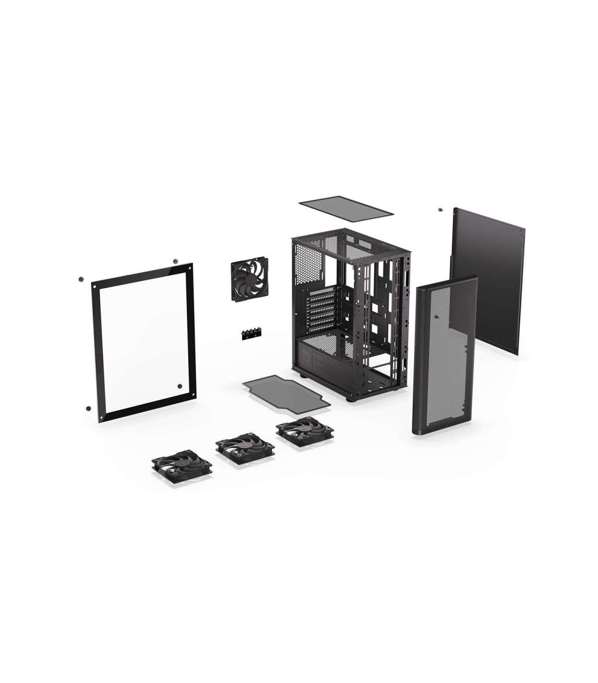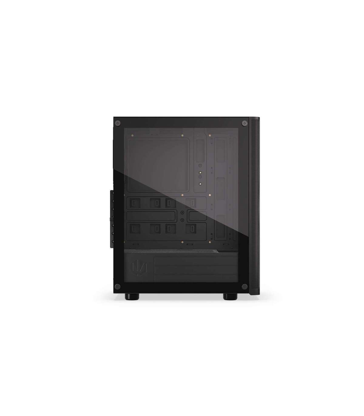 The Ventum 200 Air is a man case in black, built for special tasks in mind. It keeps your precious components cool and collected, the perforated front panel protecting them from dust — and thanks to the tempered-glass window, you can always sneak a peek inside to admire your pro cable management.