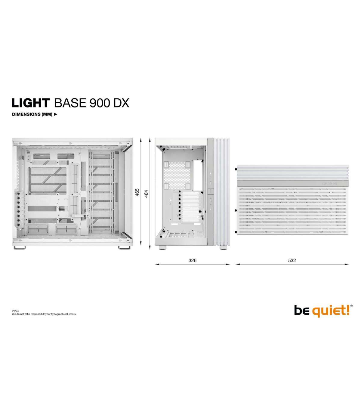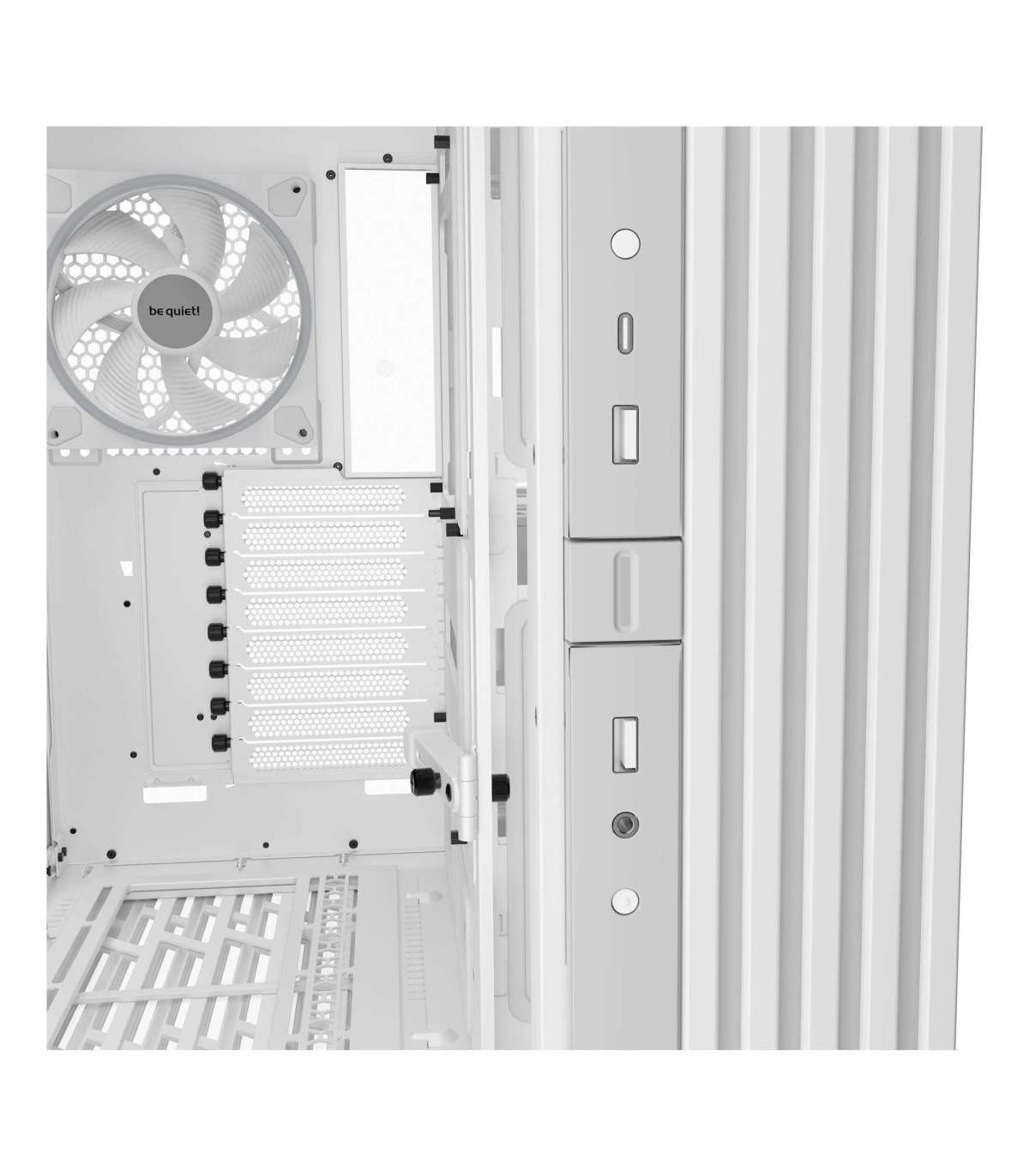 Light Base 900 DX White features a flexible VGA holder that subtly prevents your GPU from sagging. The best part: This holder works in any orientation and with a horizontally or vertically installed graphics card. The result is a clean look even if you use big and heavy graphics cards.
